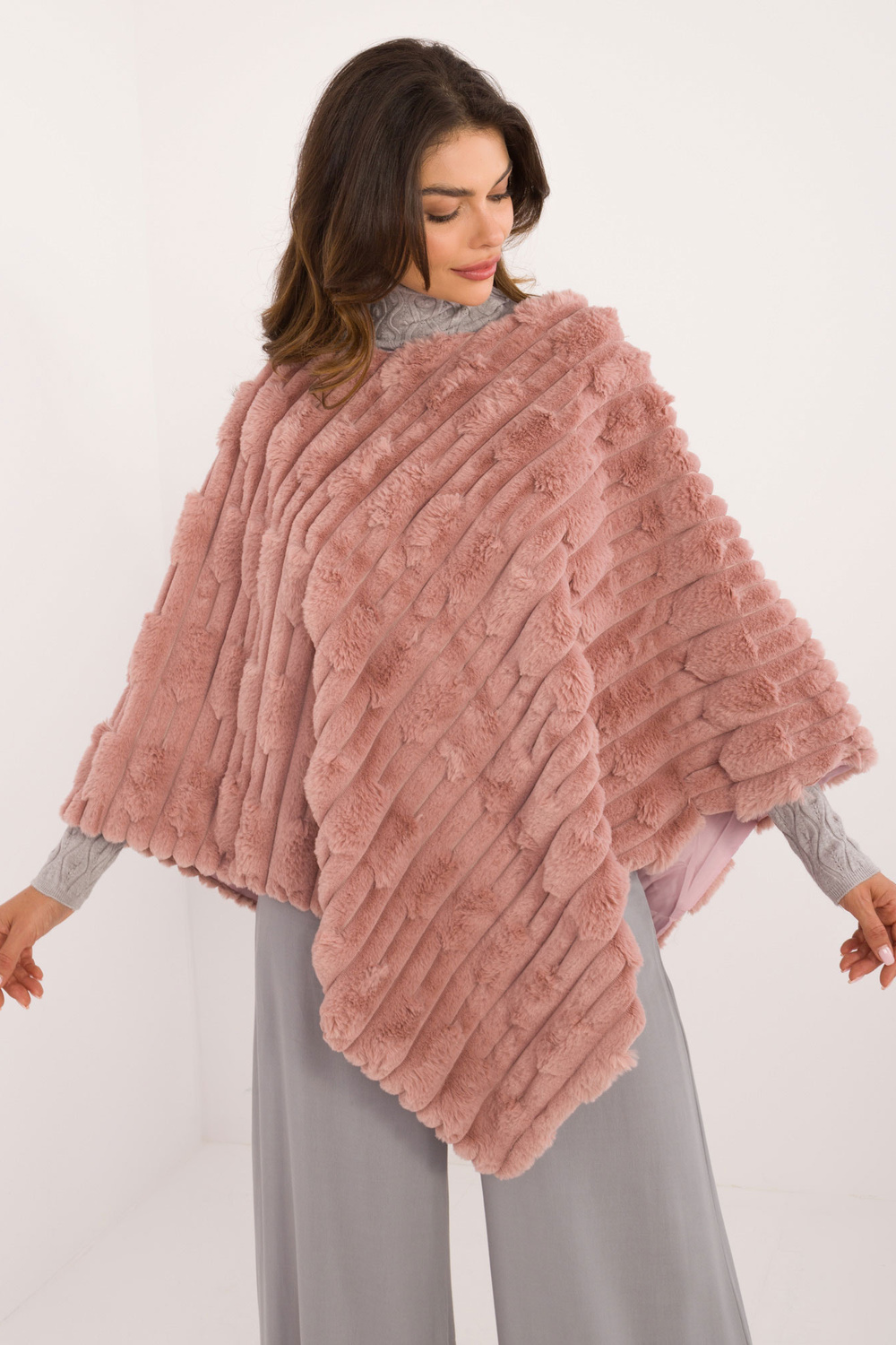 Pončo -AT-PN-2347.88-tumši rozā