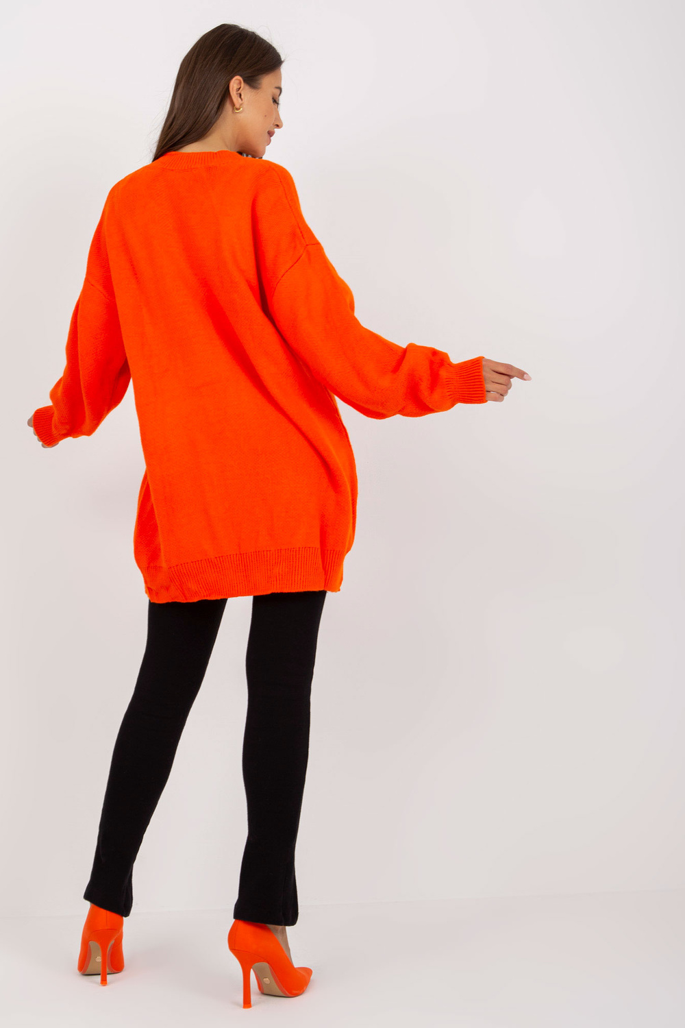 Džempera izmēri vienā izmērā mērīti plakani: platums zem padusēm - 65 cm, kopējais garums - 75 cm, piedurkņu garums - 58 cm.