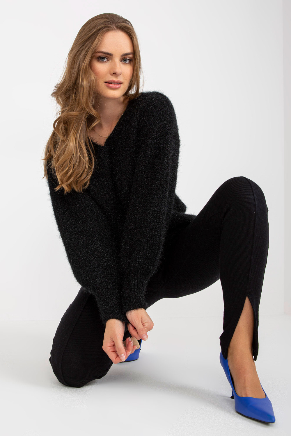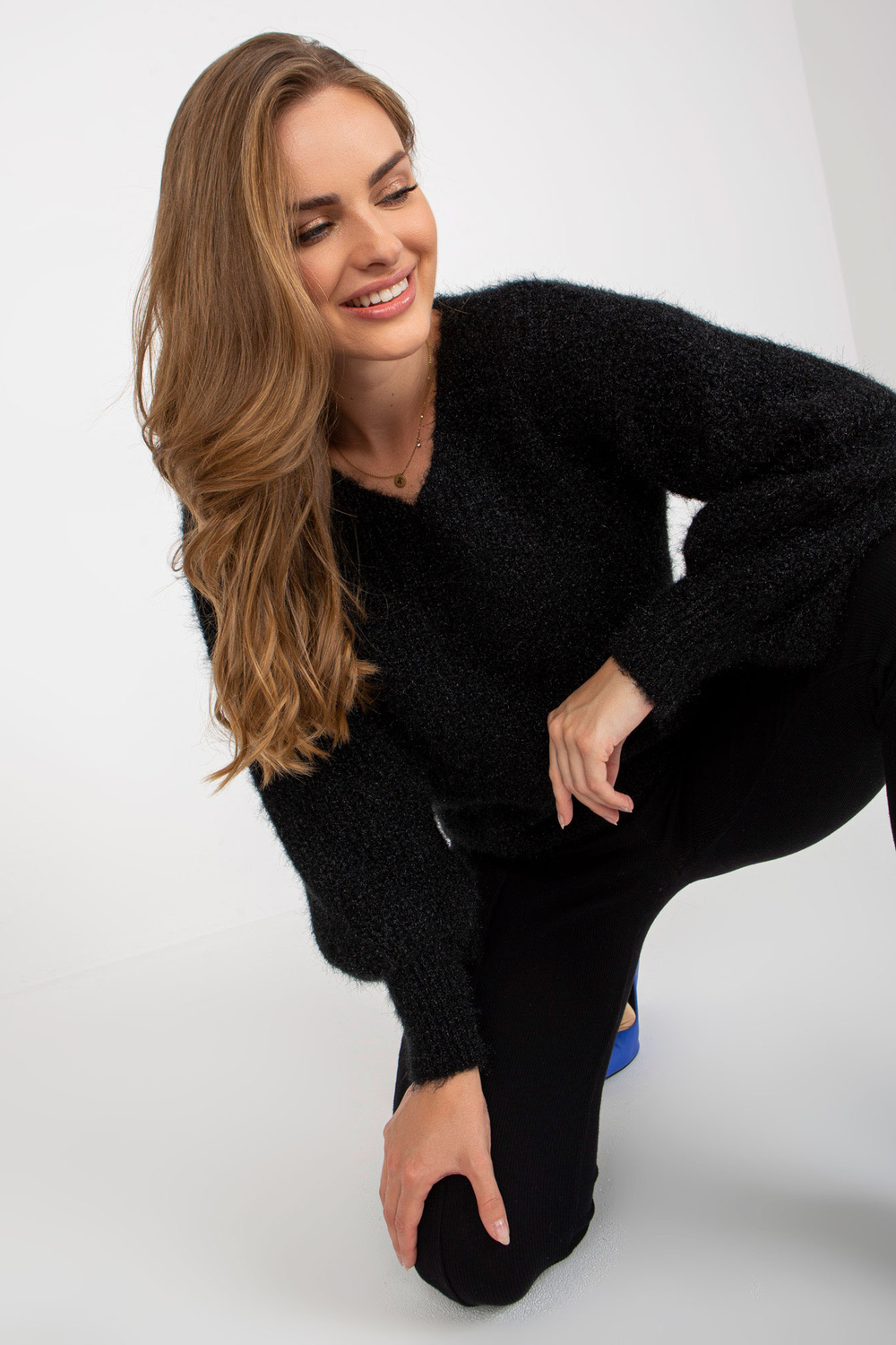 Melns, pūkains klasisks džemperis ar platām piedurknēm OCH BELLA .