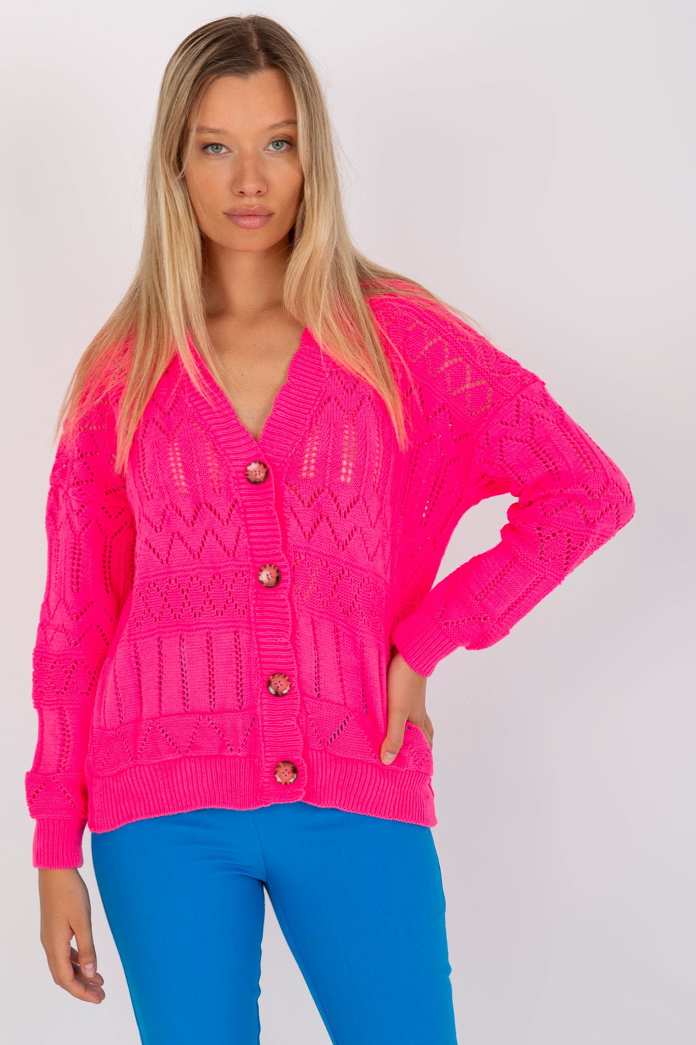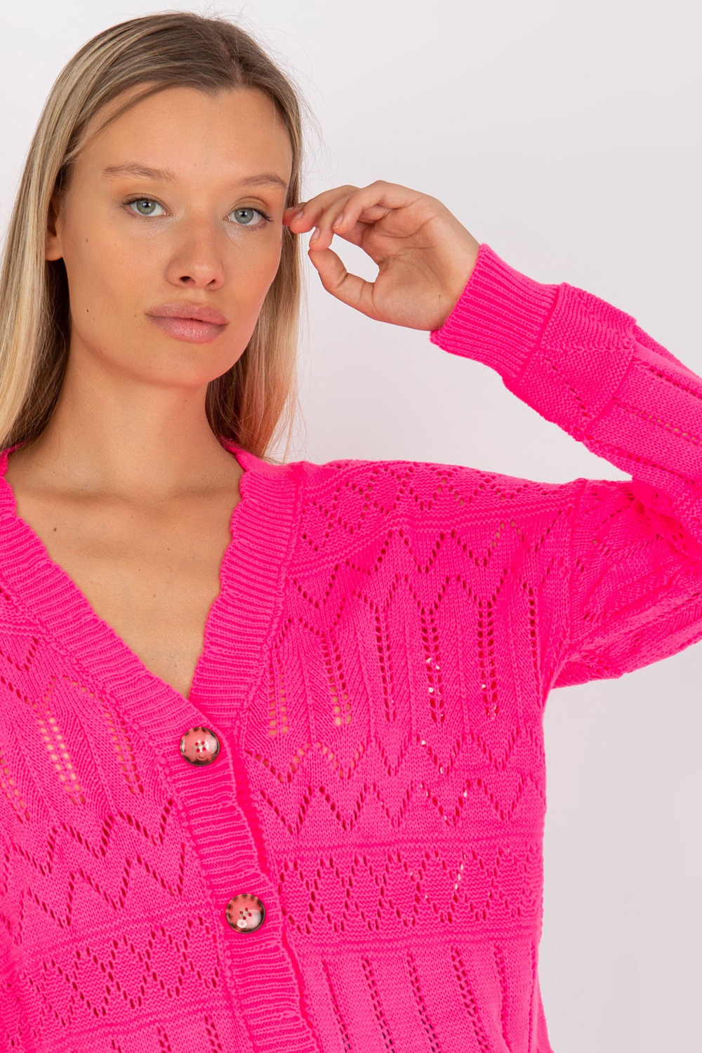 Fluopink ažūra vasaras džemperis ar pogām RUE PARIS .