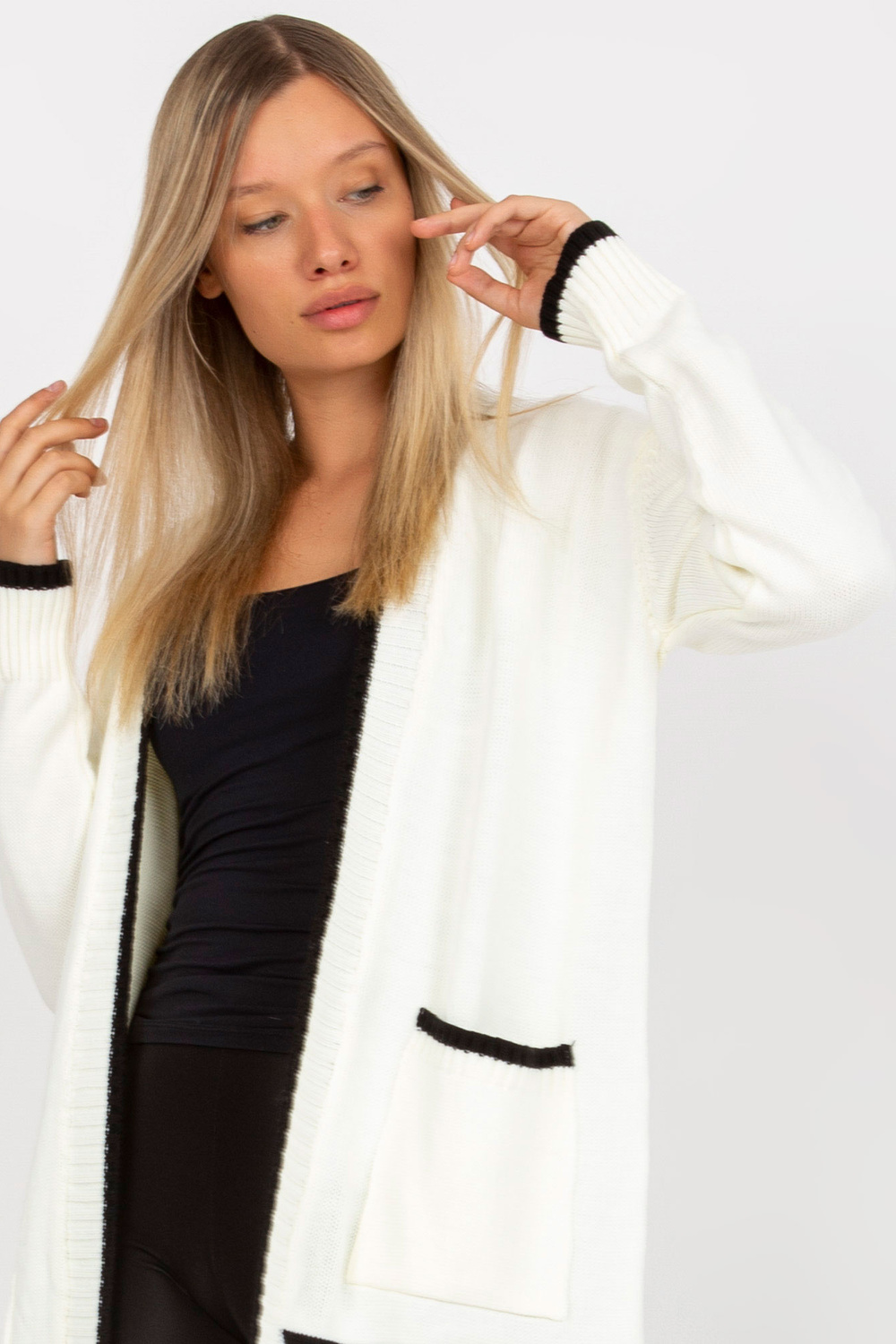 Ecru-melns sieviešu jaka bez aizdares RUE PARIS .
