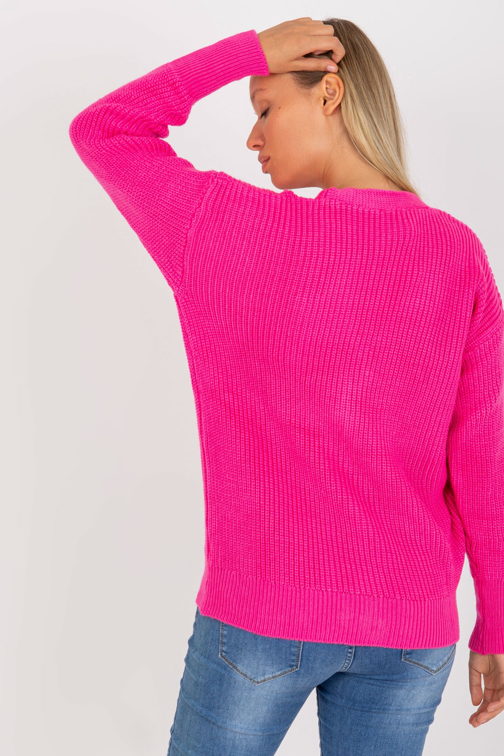 Fluopink V veida kakla jaka RUE PARIS . Produkta kods: LC-SW-0321.06X dominējošais raksts: gluds Stils: neformāls gadījums: ikdienišķs, ārpus pilsētas, pastaigāties, uz darbu Modelis valkā viena izmēra izmēru. Modeļa izmēri: augstums 178 cm, krūtis 89 cm, viduklis 65 cm,
