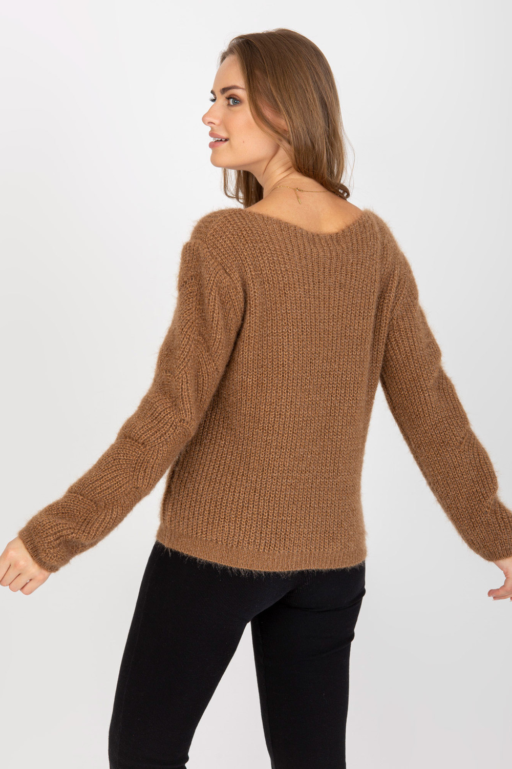 Brūns, klasisks džemperis ar ažūra rakstu OCH BELLA .