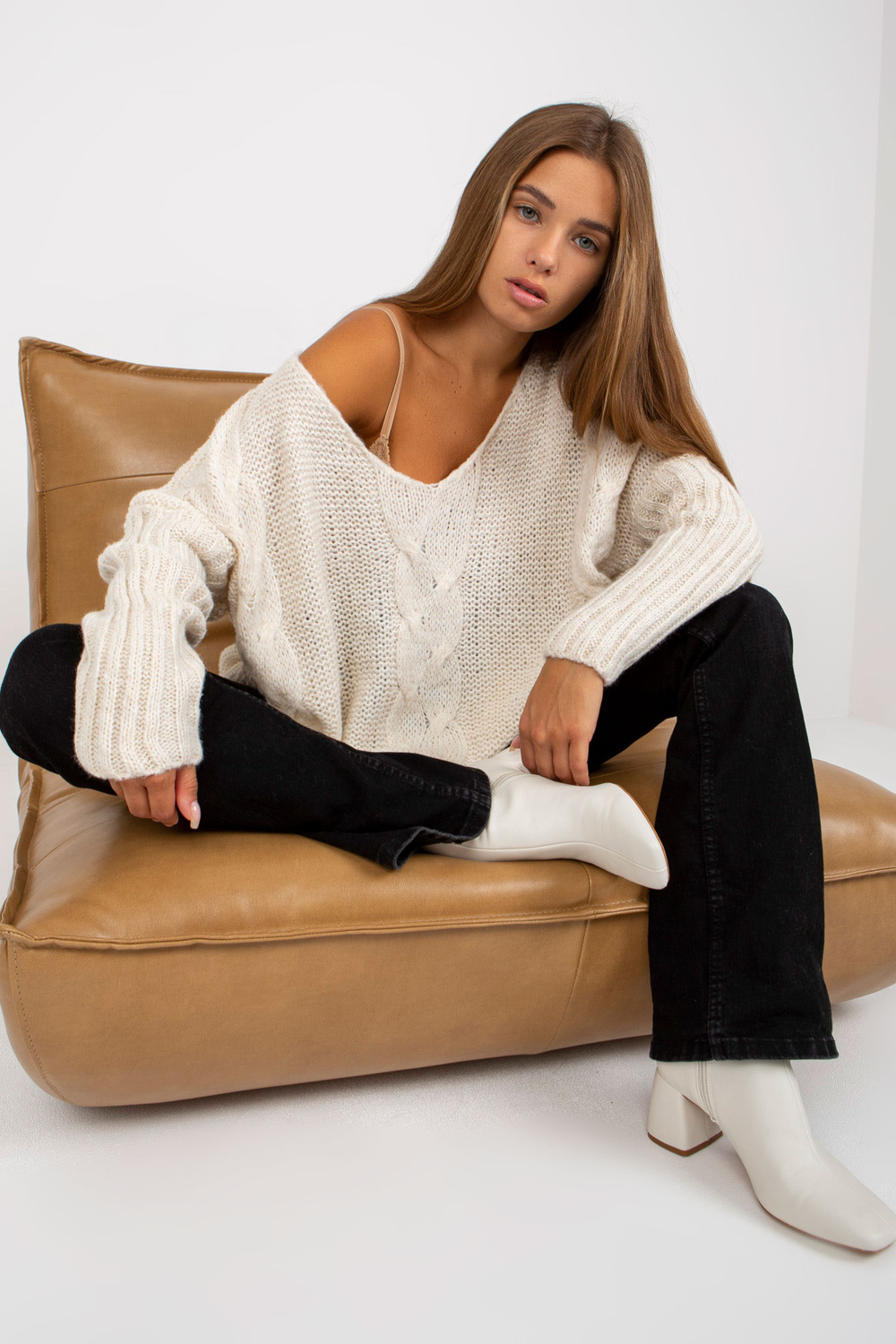 Ecru džemperis ar bizēm ar vilnu OCH BELLA