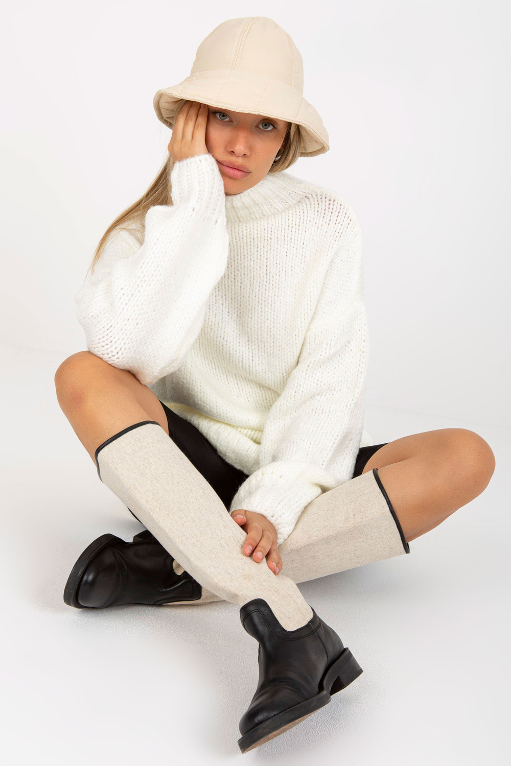 Modelis valkā viena izmēra izmēru. Modeļa izmēri: augums 178 cm, krūtis 89 cm, viduklis 65 cm, gurni 95 cm.