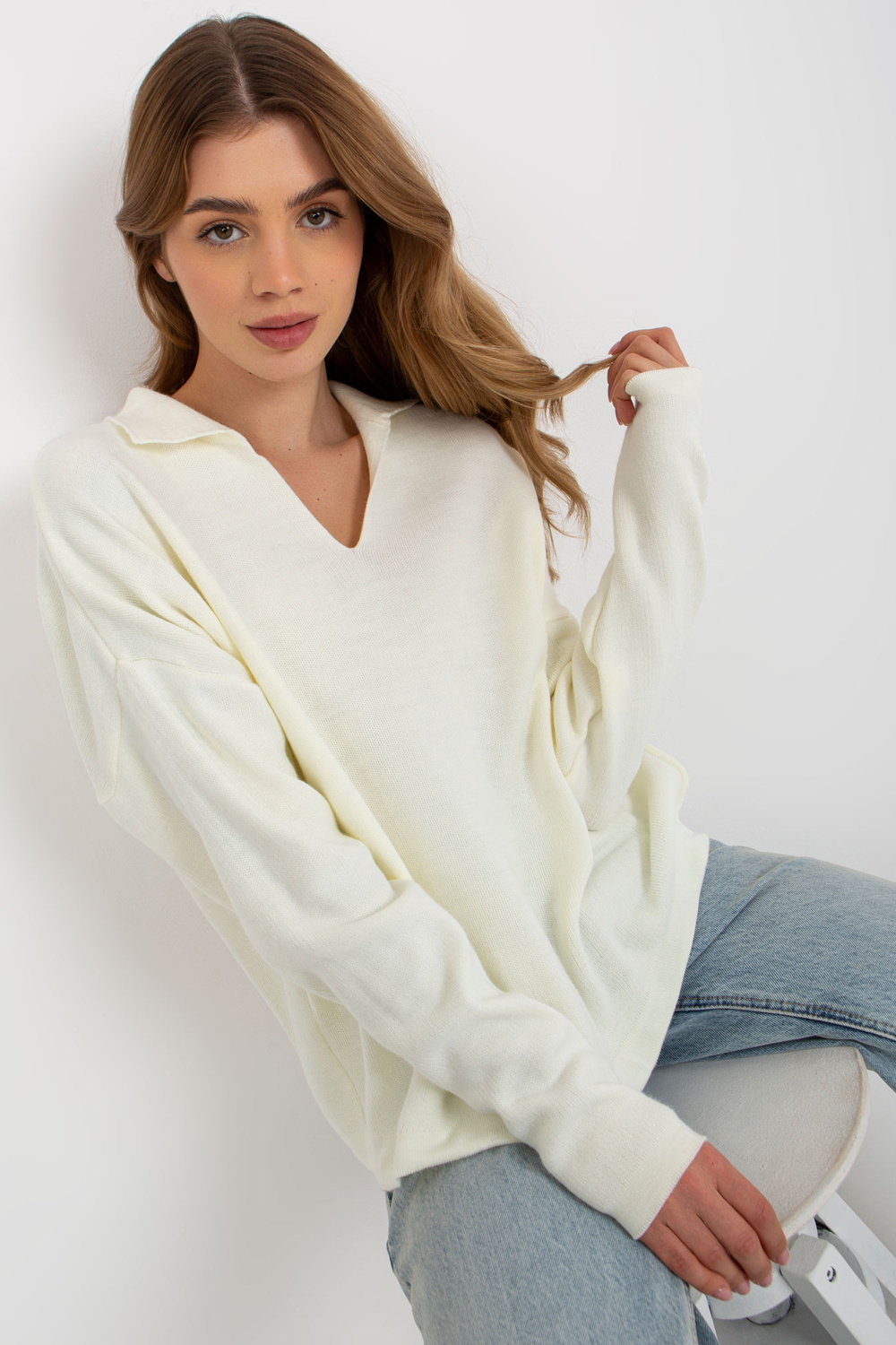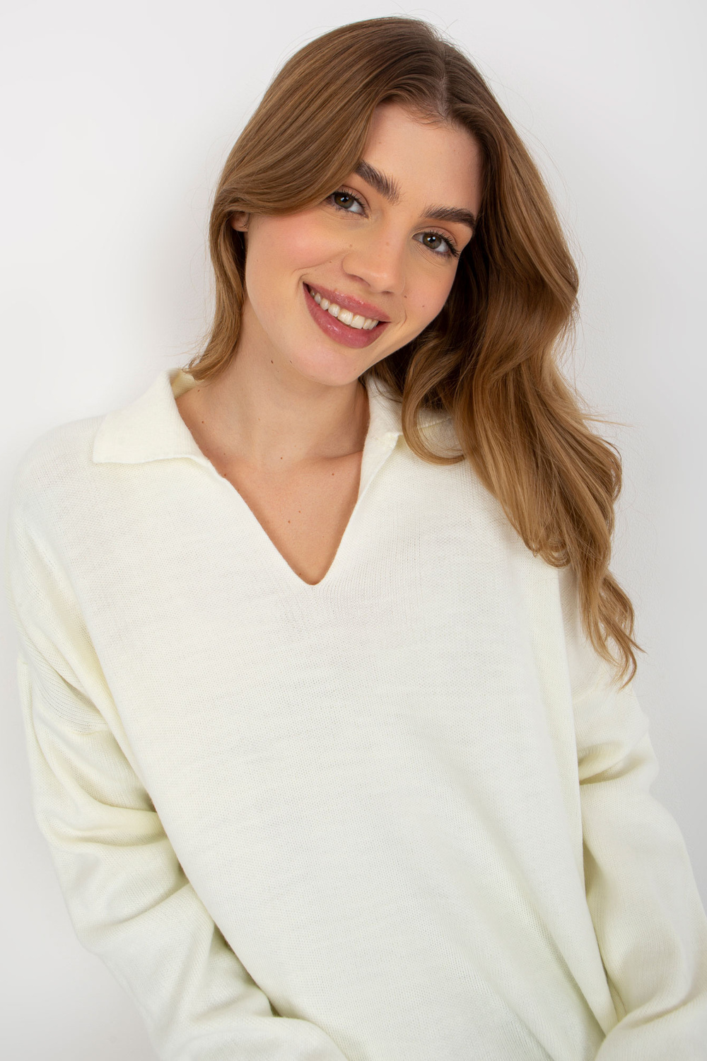 Ecru sieviešu liela izmēra džemperis ar apkakli.