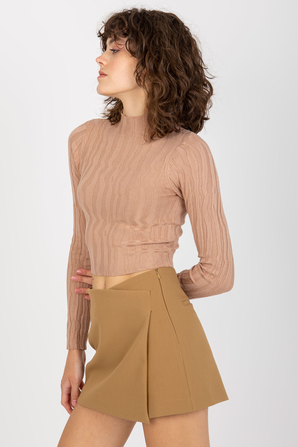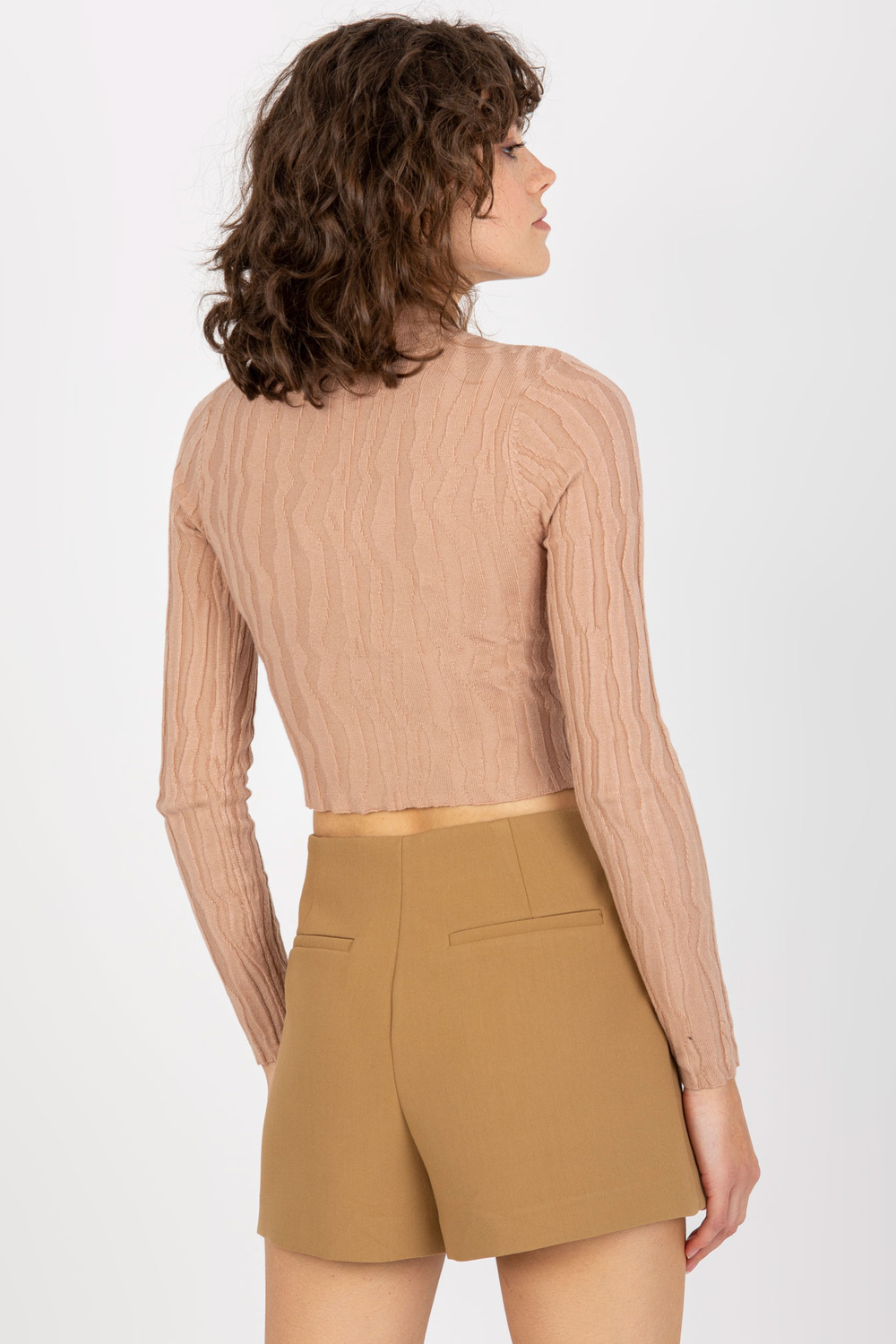 Tumši smilškrāsas pieguļošs īss džemperis ar stāvapkakli