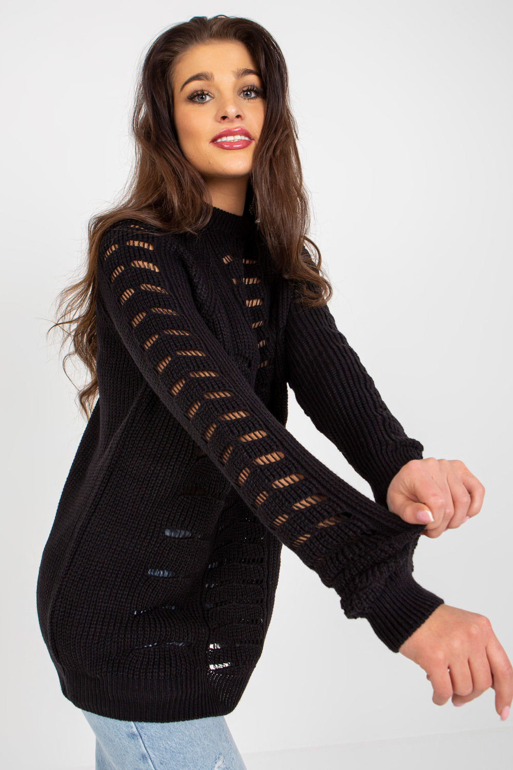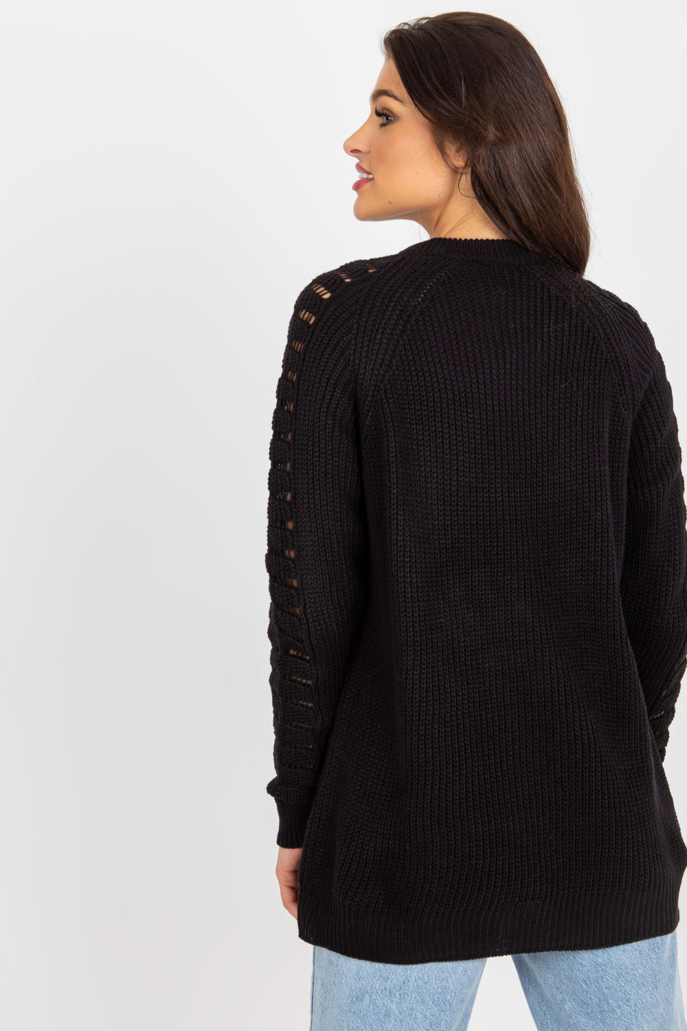 Melns ažūra liela izmēra džemperis ar vilnas piedevu.