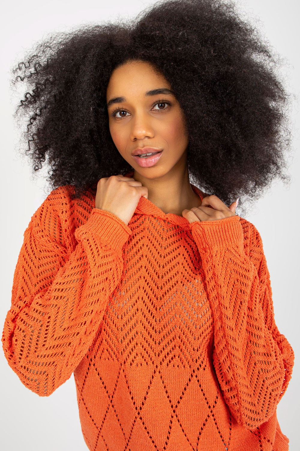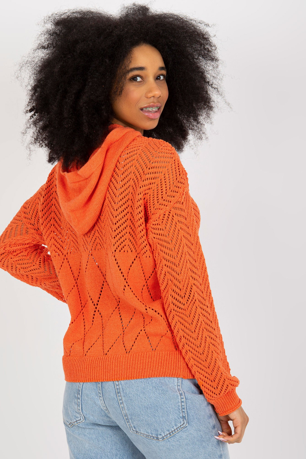 Oranžs sieviešu vasaras džemperis ar ažūra rakstu.
