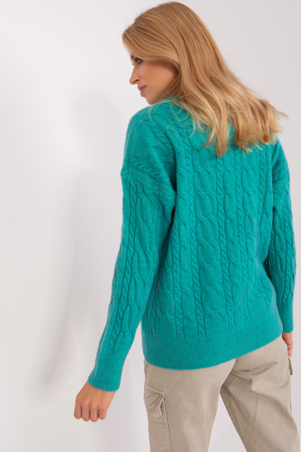 Džempera izmēri viena izmēra izmērā, mērot plakanā: platums zem rokām - 60 cm, piedurknes garums - 60 cm, kopējais garums - 63 cm.