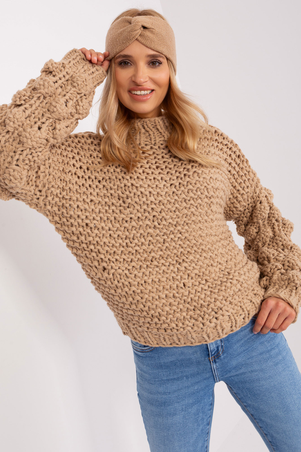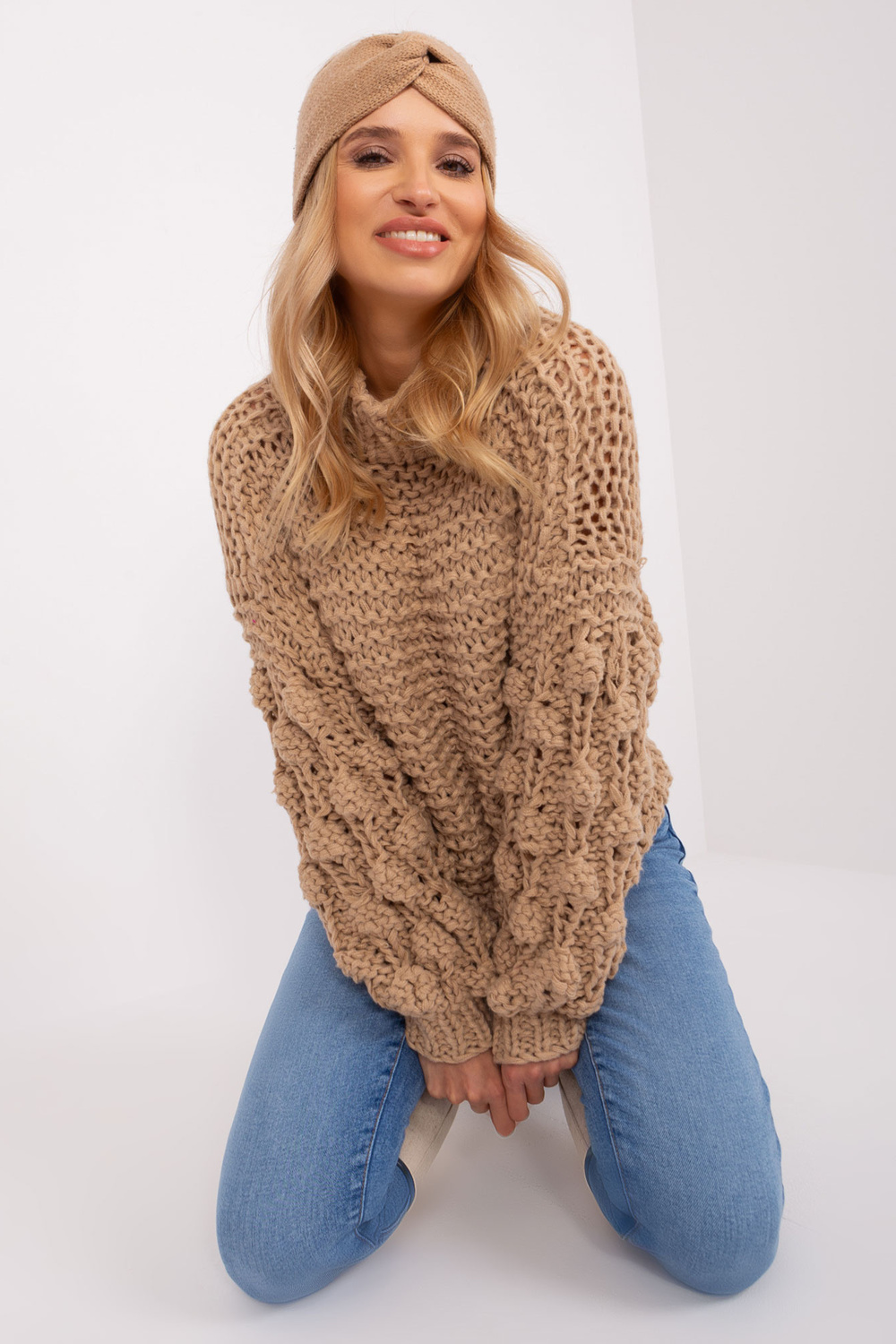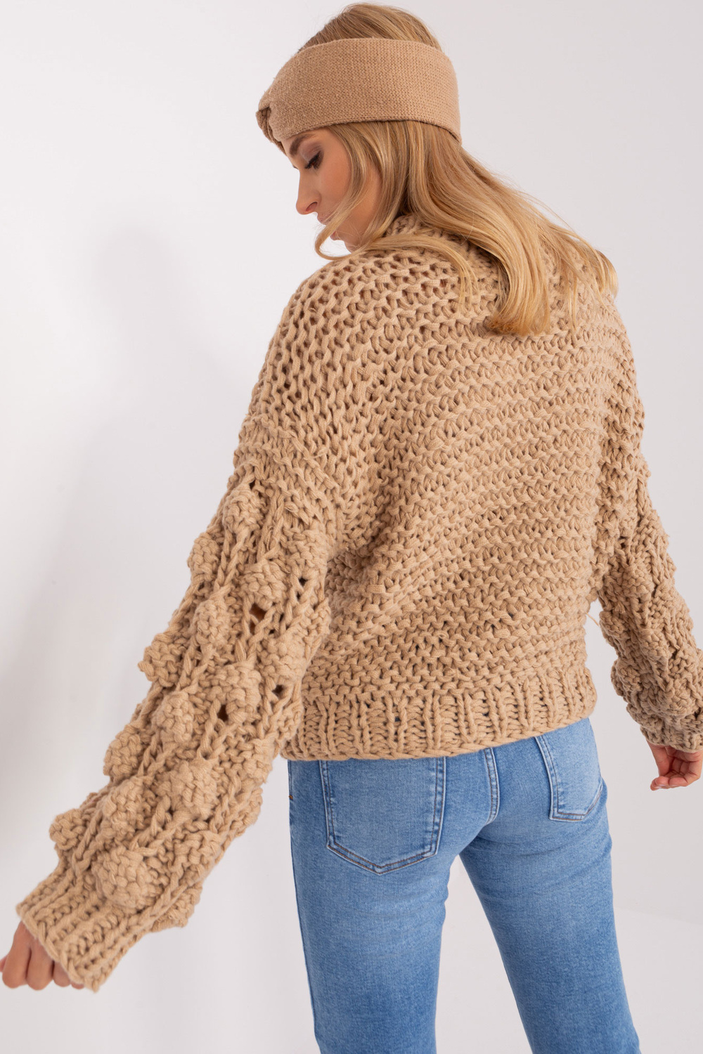 Džempera izmēri viena izmēra izmērā, mērot plakanā: platums zem rokām - 70 cm, piedurknes garums - 65 cm, kopējais garums - 60 cm.