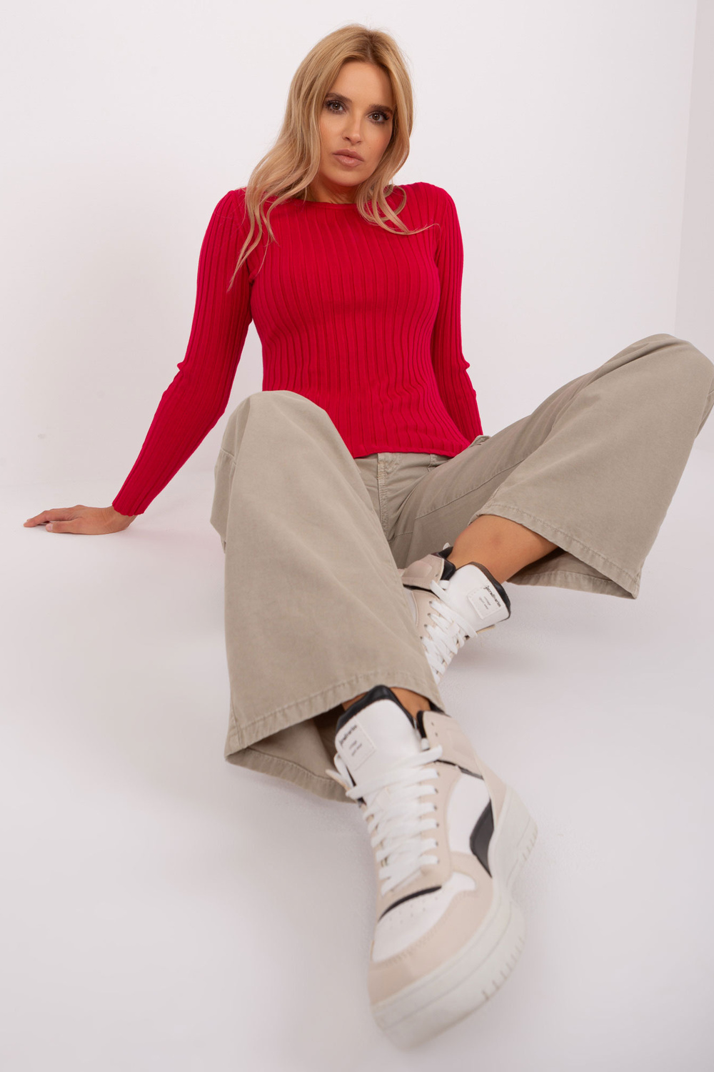 Modele valkā S/M izmēru. Modeļa izmēri: augums 175 cm, krūtis 90 cm, viduklis 66 cm, gurni 94 cm.