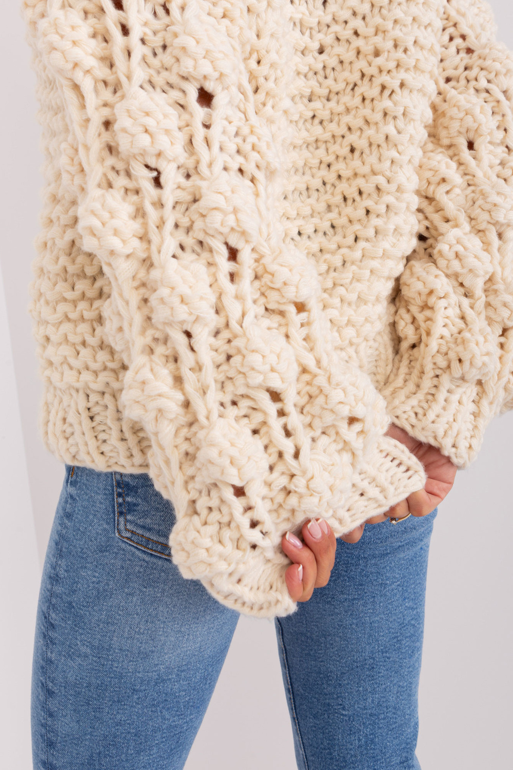 Džempera izmēri viena izmēra izmērā, mērīts plakanā: platums zem rokām - 70 cm, piedurknes garums - 65 cm, kopējais garums - 60 cm.