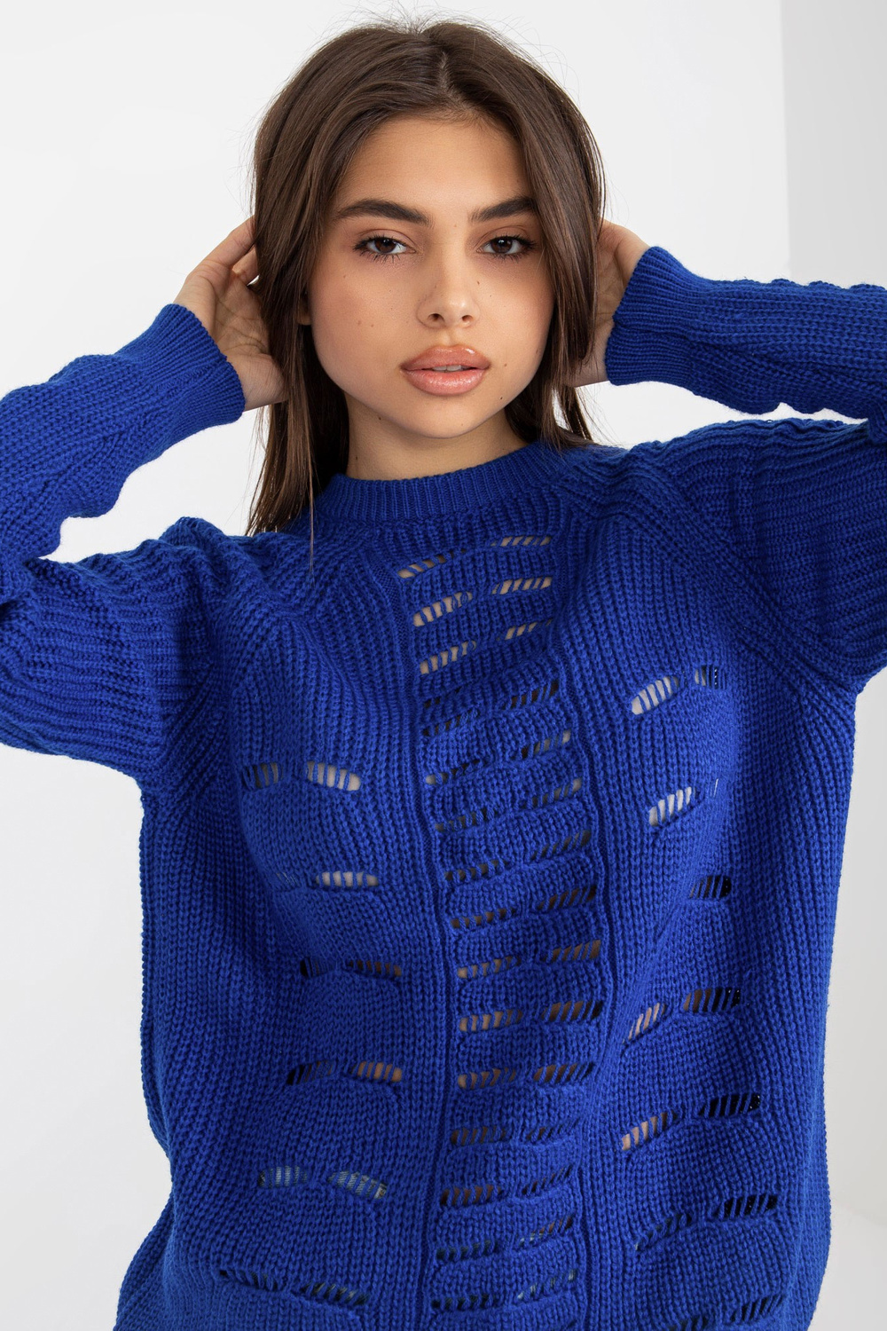 Kobalta ažūra liela izmēra džemperis ar vilnas piedevu.