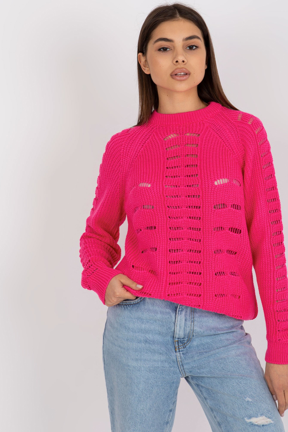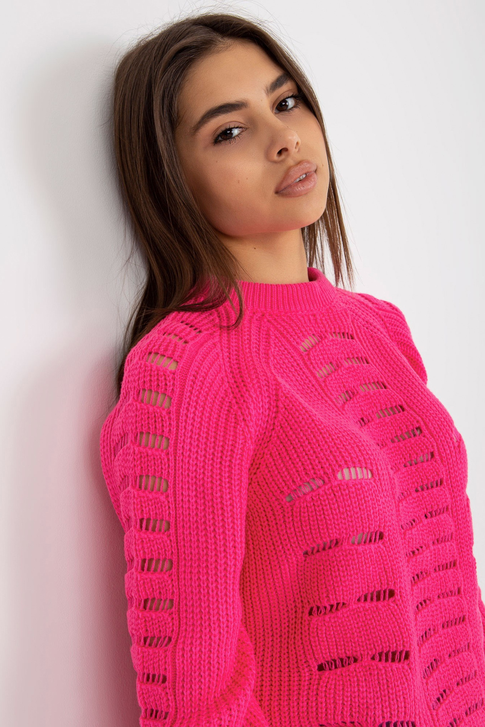 Fluo rozā garš, liela izmēra džemperis ar ažūra rakstu.