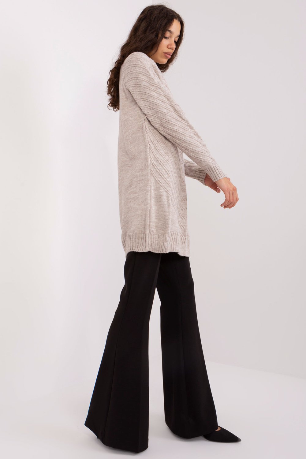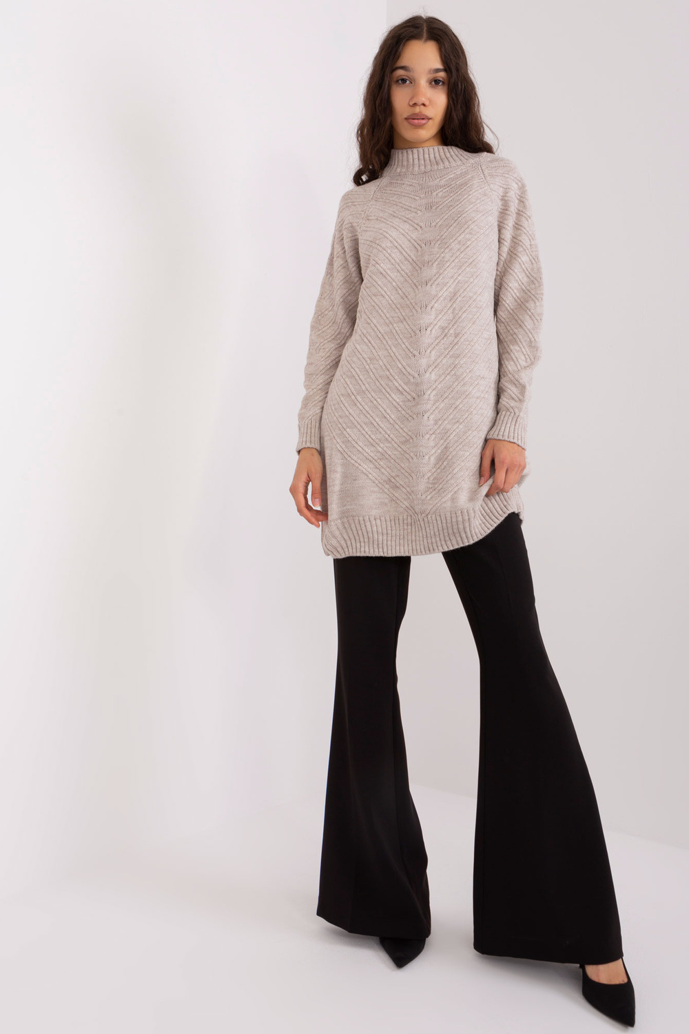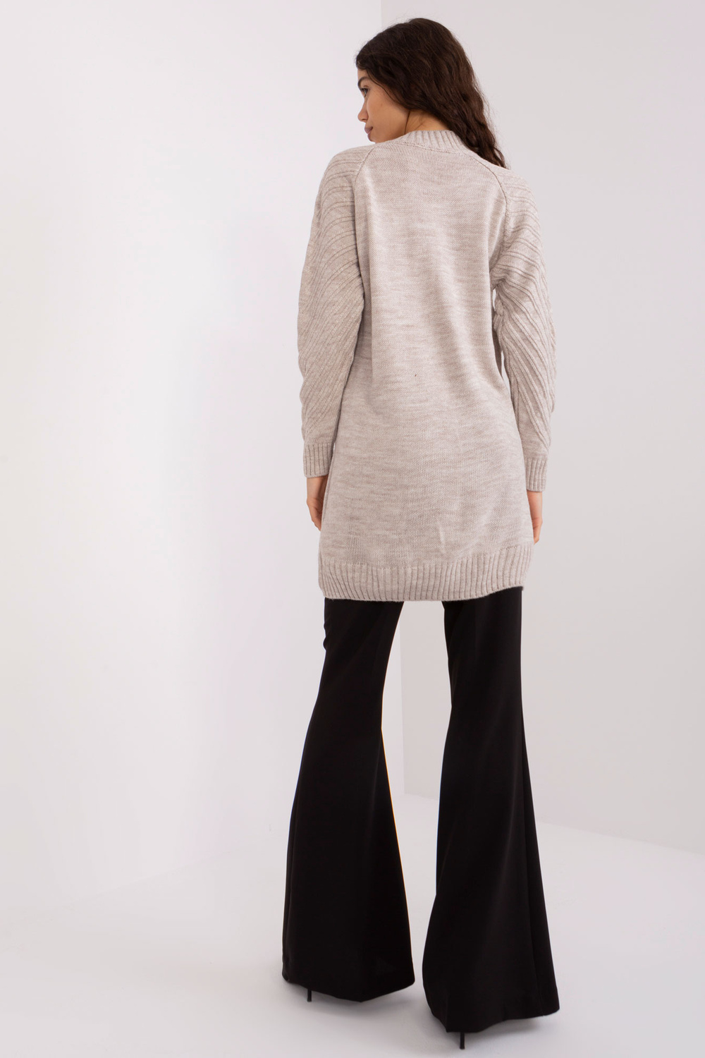 Džempera izmēri viena izmēra izmērā, mērot plakanā: platums zem rokām - 65 cm, piedurknes garums - 60 cm, kopējais garums - 85 cm.