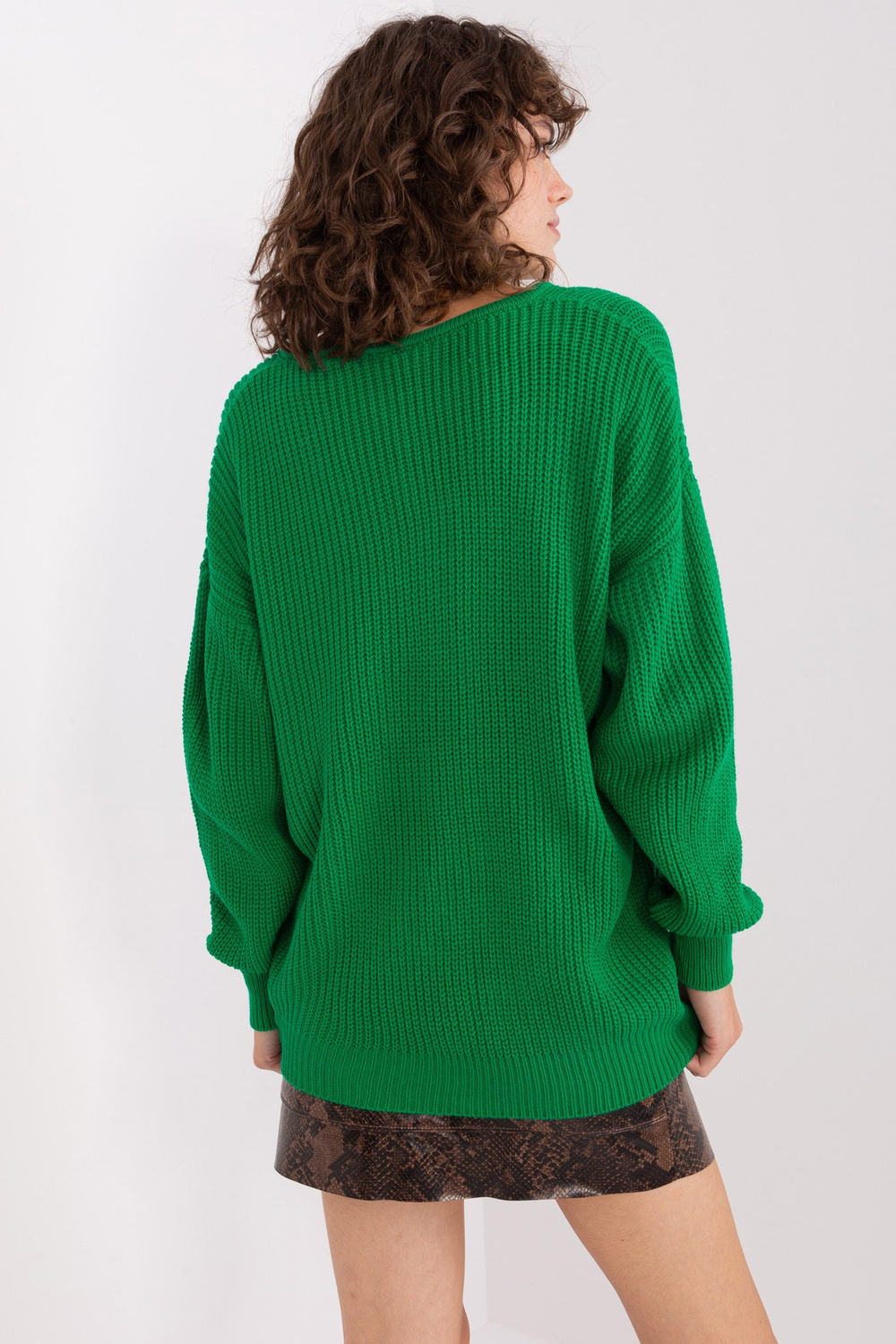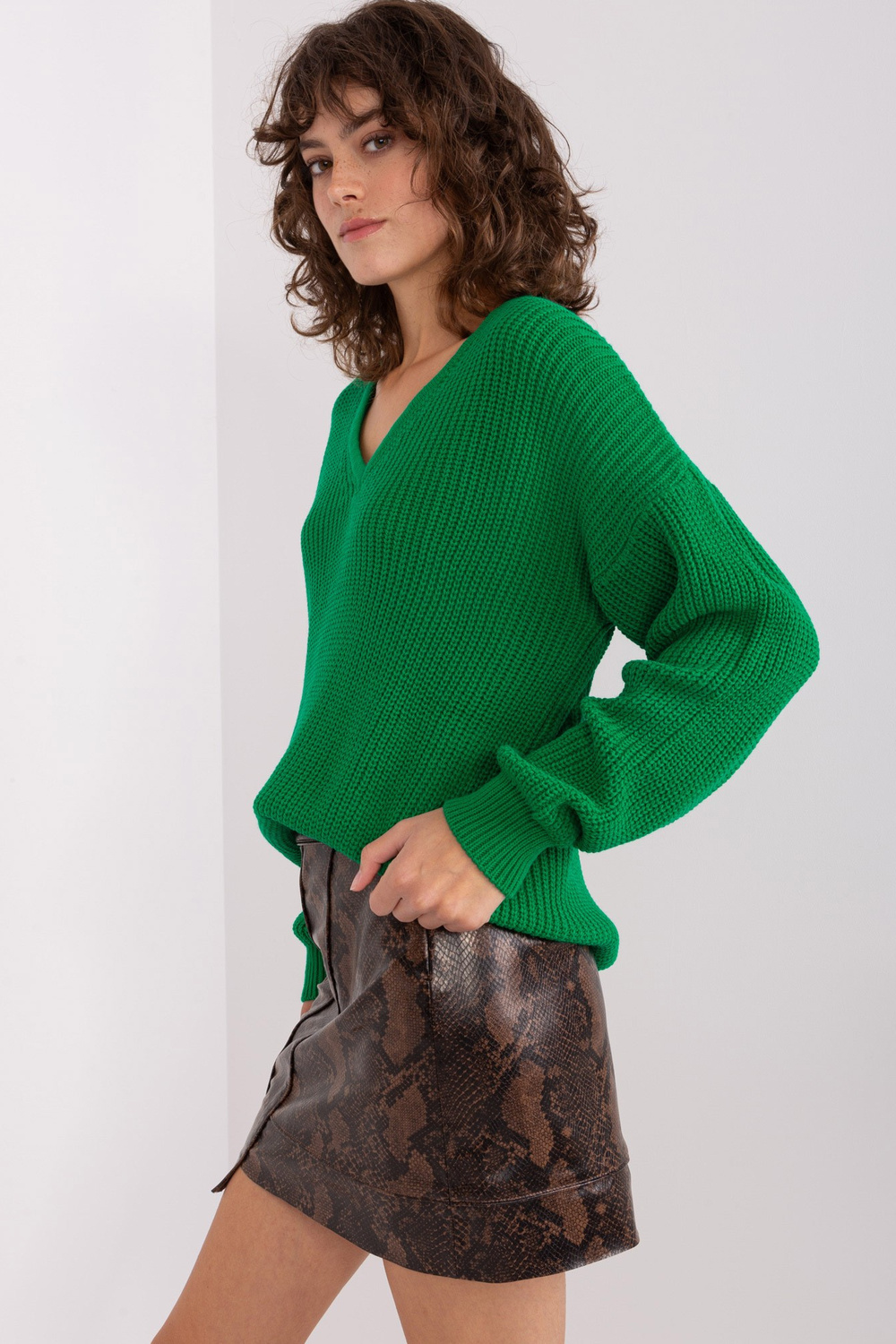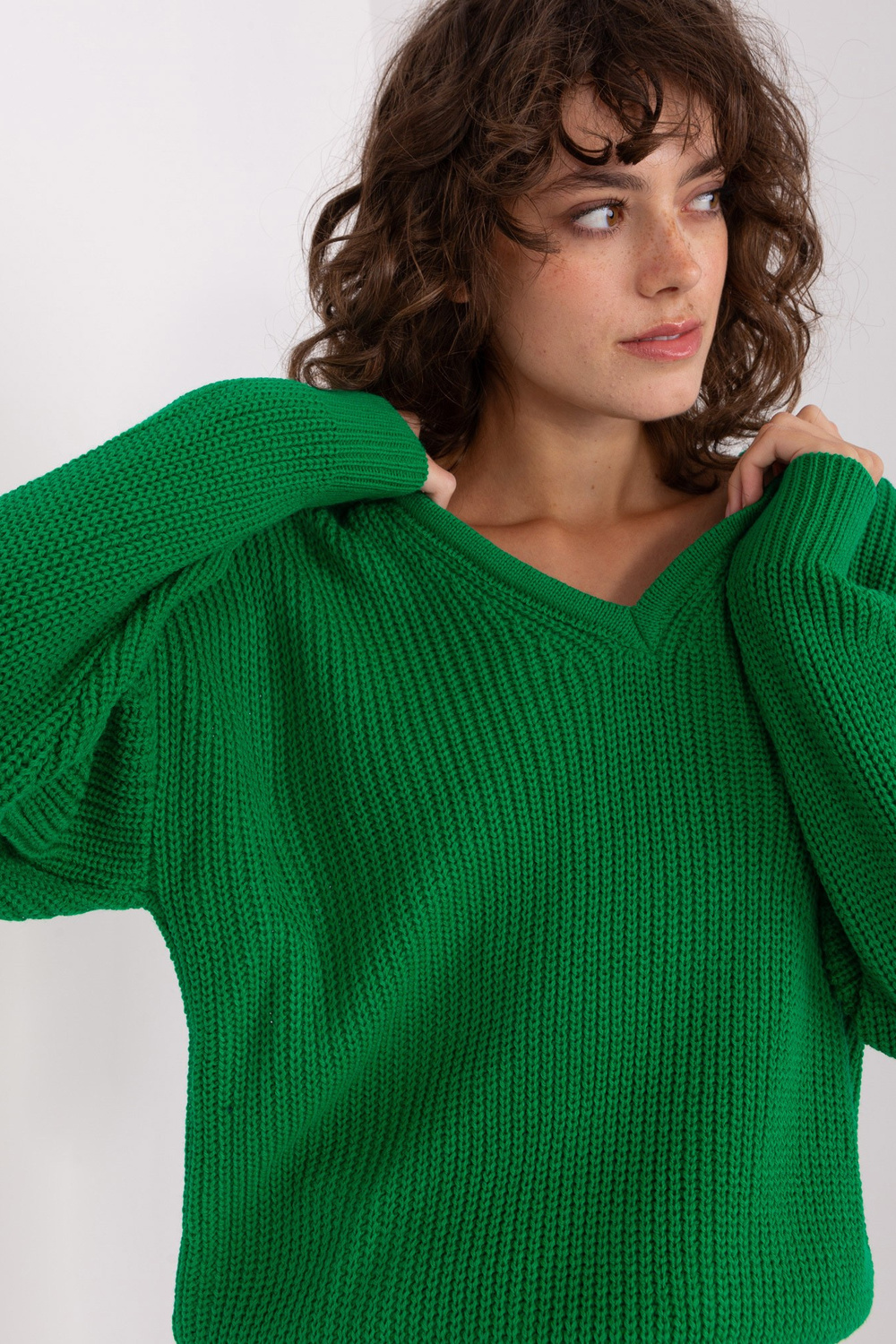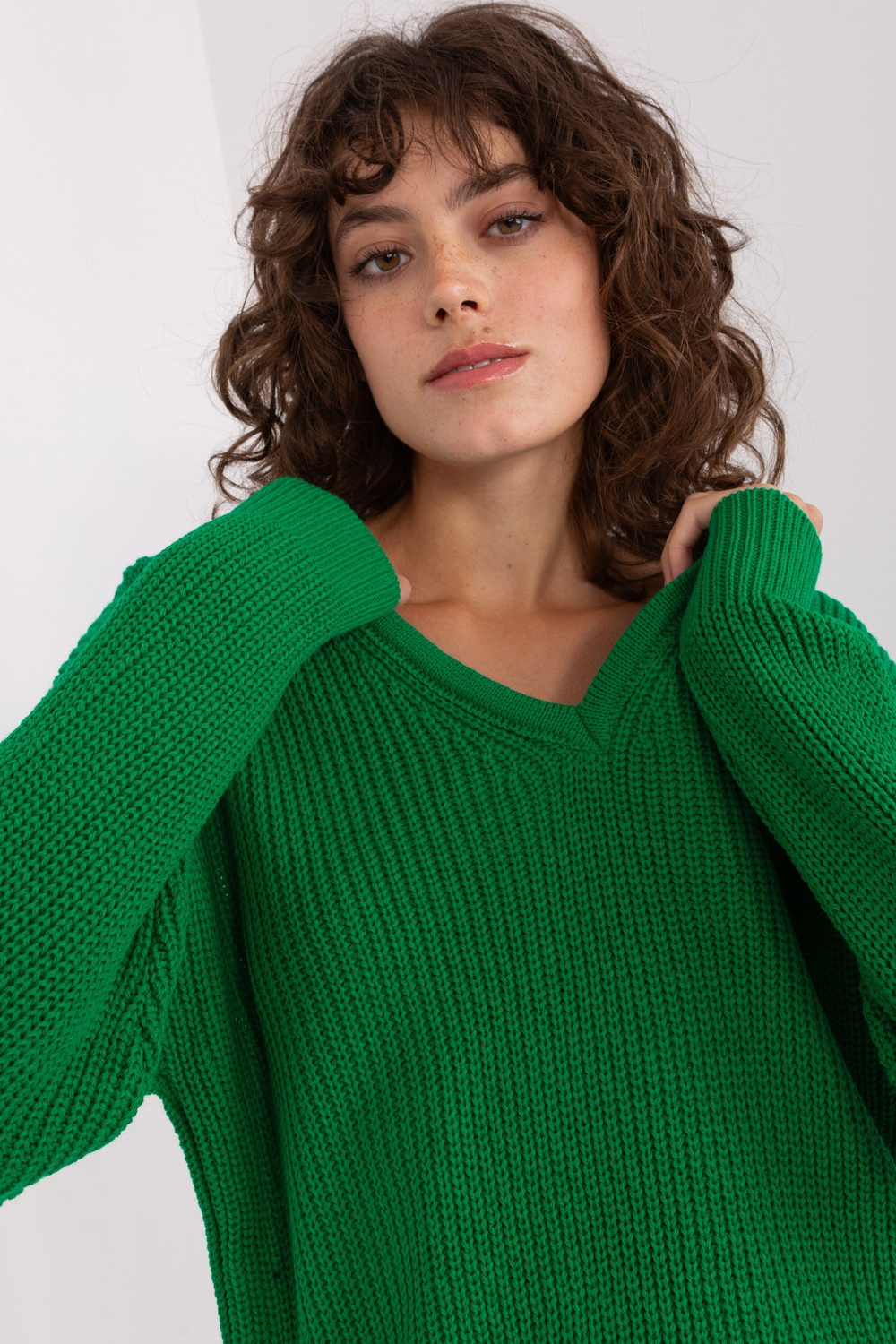Zaļš, liela izmēra sieviešu džemperis ar V veida kakla izgriezumu .