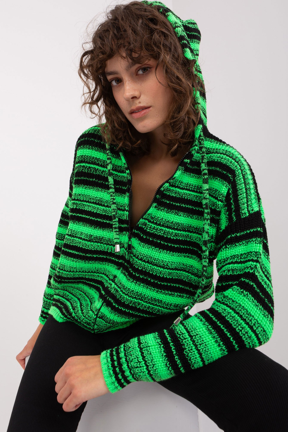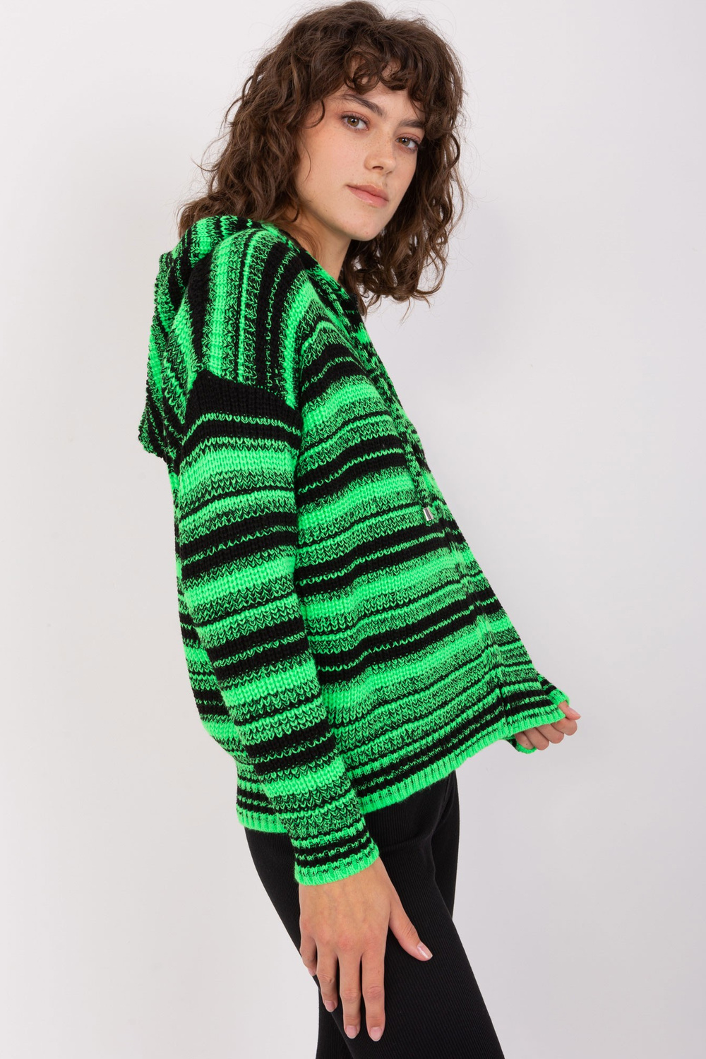 Zaļš un melns vilnas džemperis .