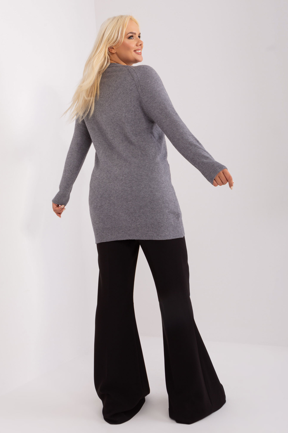 Džempera izmēri XL/XXL izmērā mērīti plakaniski: platums zem rokām - 65 cm, piedurknes garums - 64 cm, kopējais garums - 86 cm.