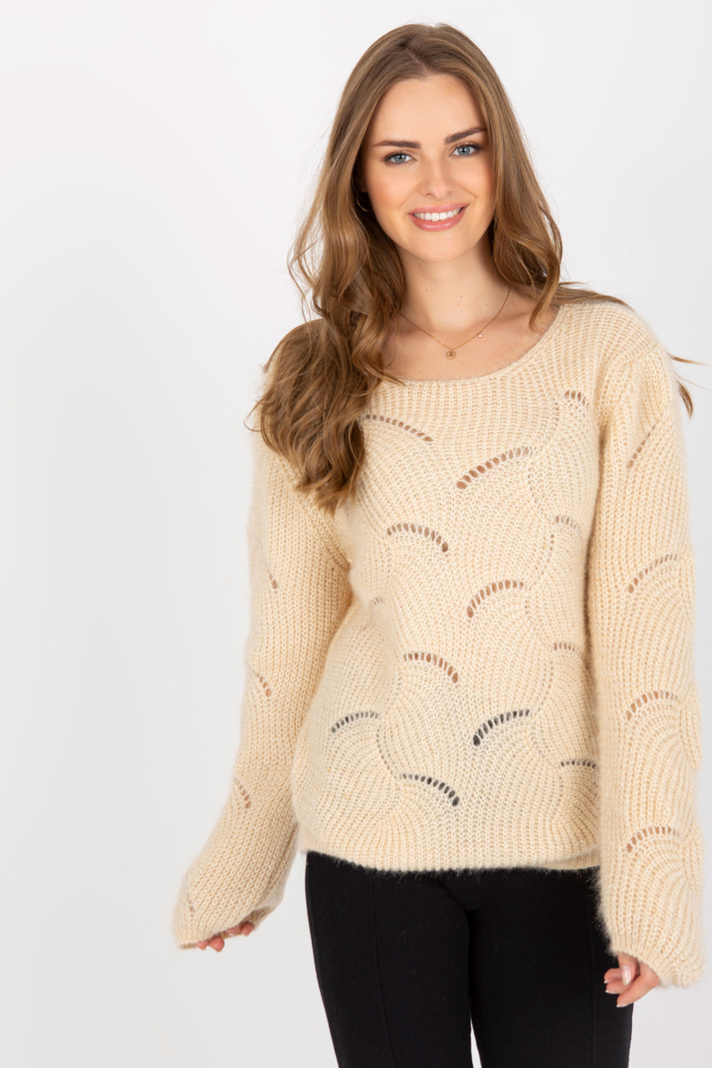 Klasisks smilškrāsas ažūra džemperis ar mohēru OCH BELLA .