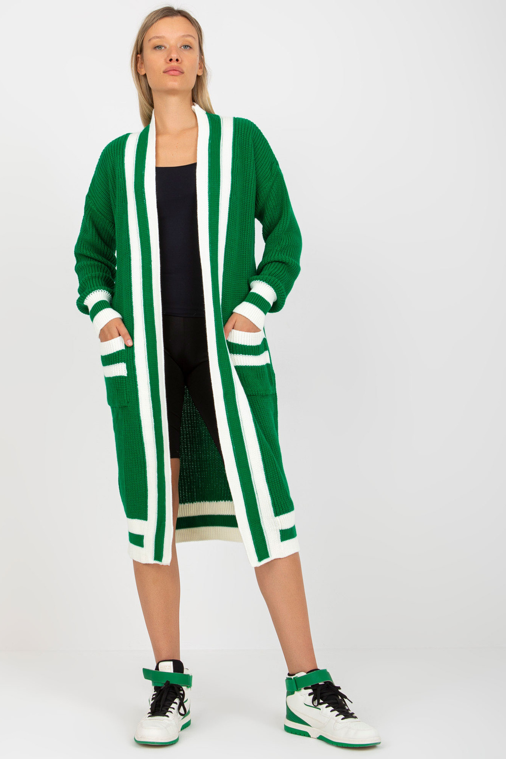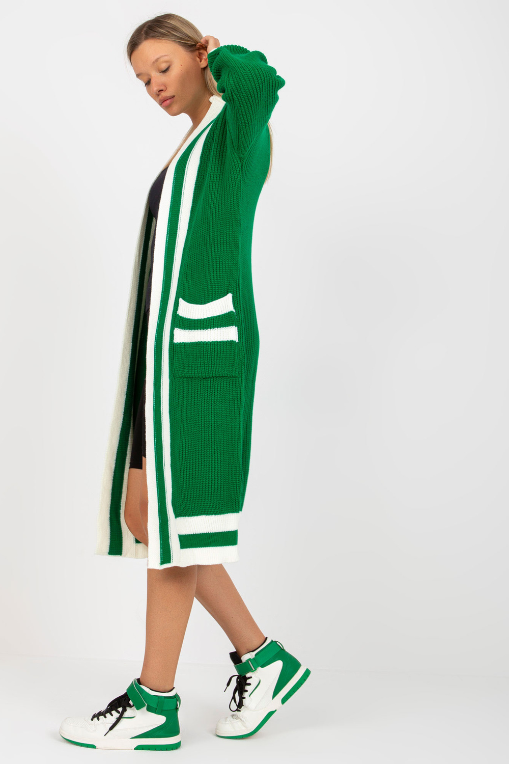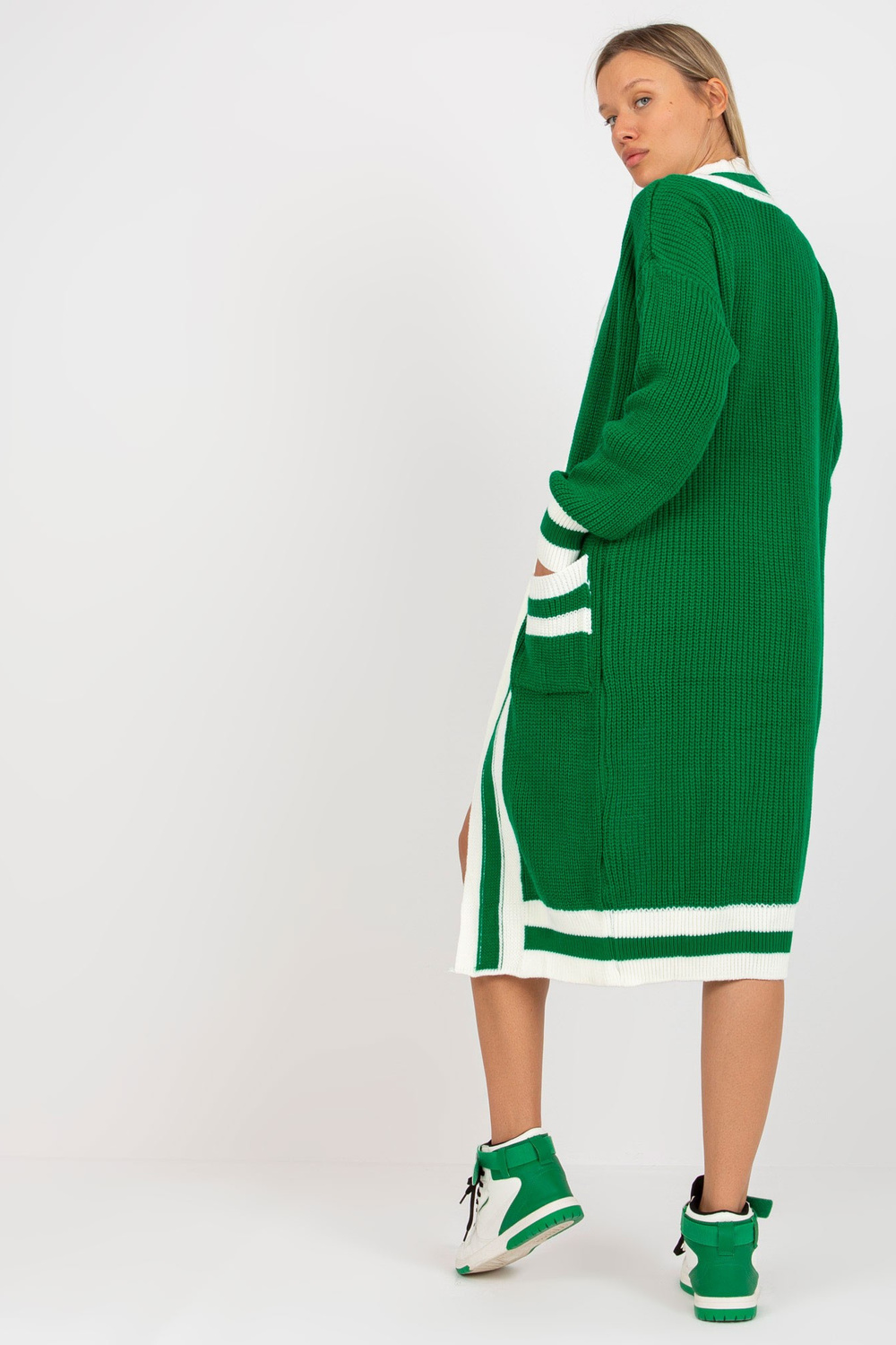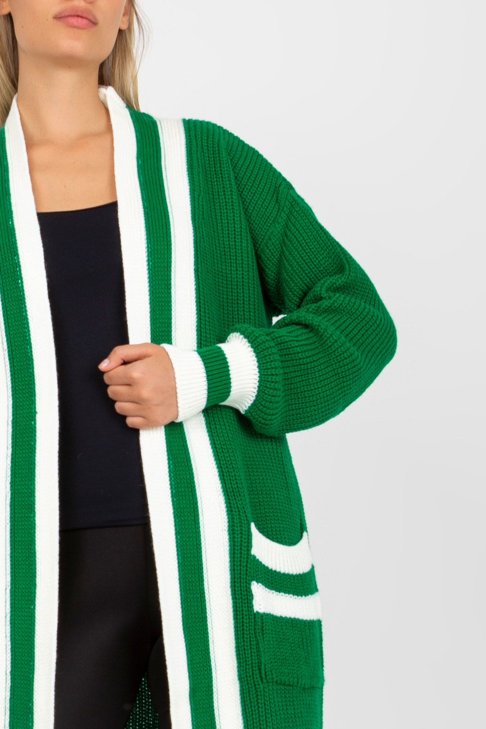 Zaļgars jaciņš ar kabatām RUE PARIS . Produkta kods: LC-SW-0291.06X dominējošais raksts: gluds Stils: neformāls gadījums: ikdienišķs, ārpus pilsētas, pastaigāties, uz darbu Modelis valkā viena izmēra izmēru. Modeļa izmēri: augums 178 cm, krūtis 89 cm, viduklis 6