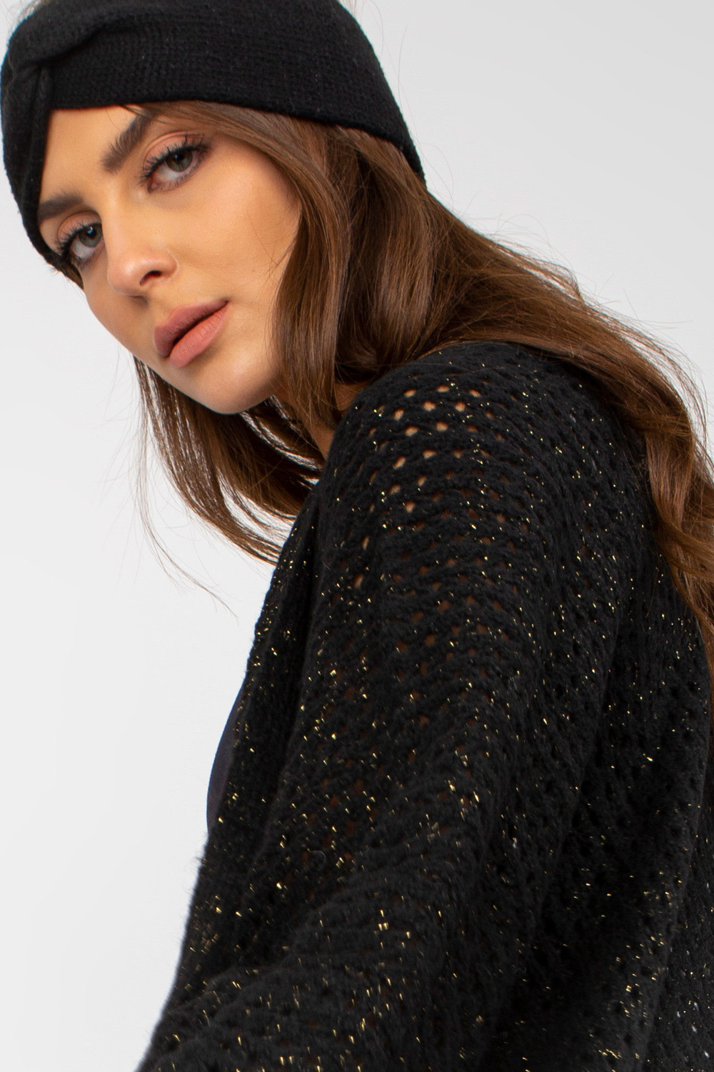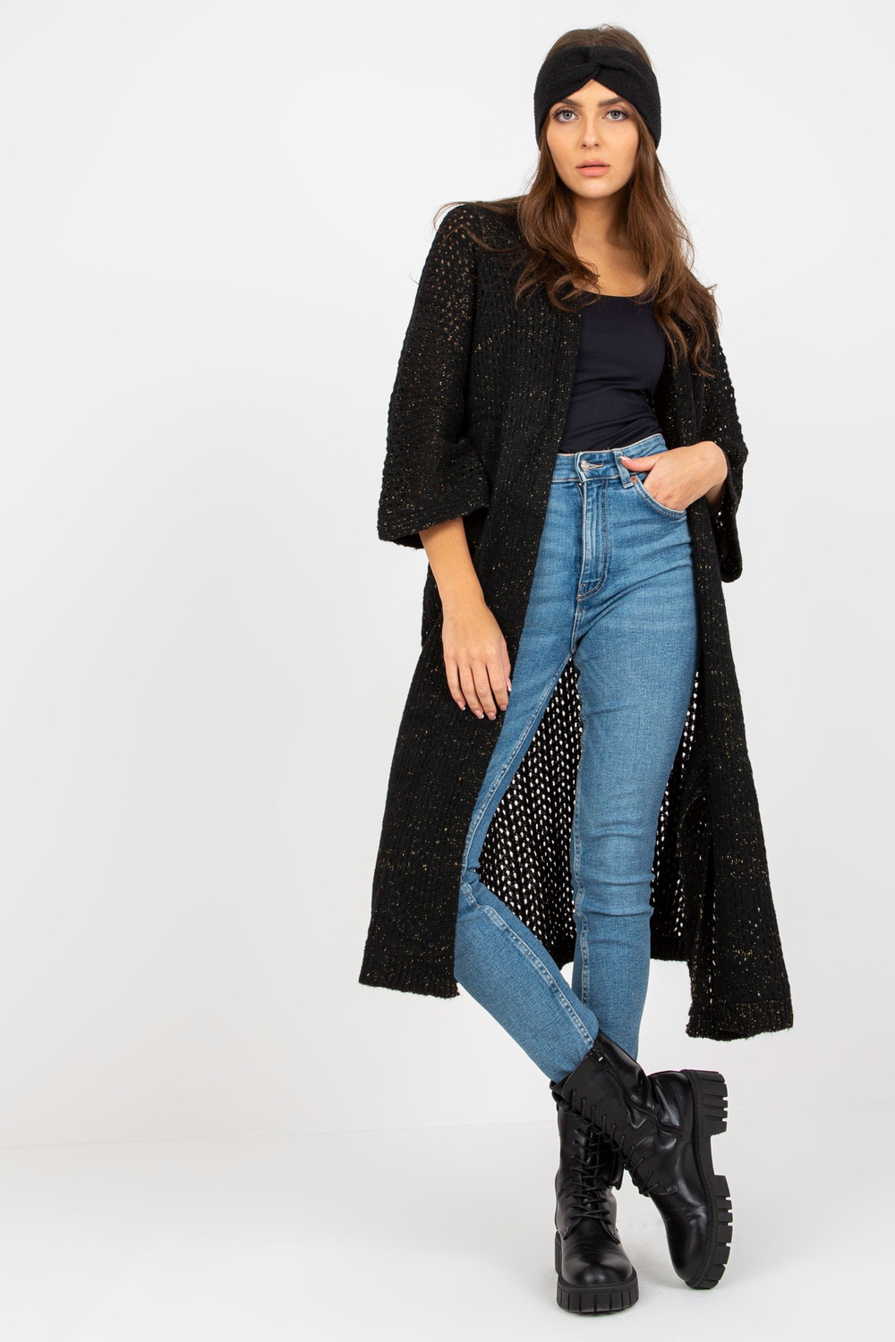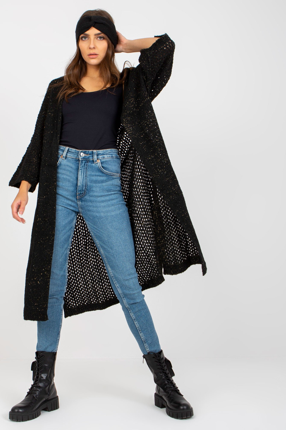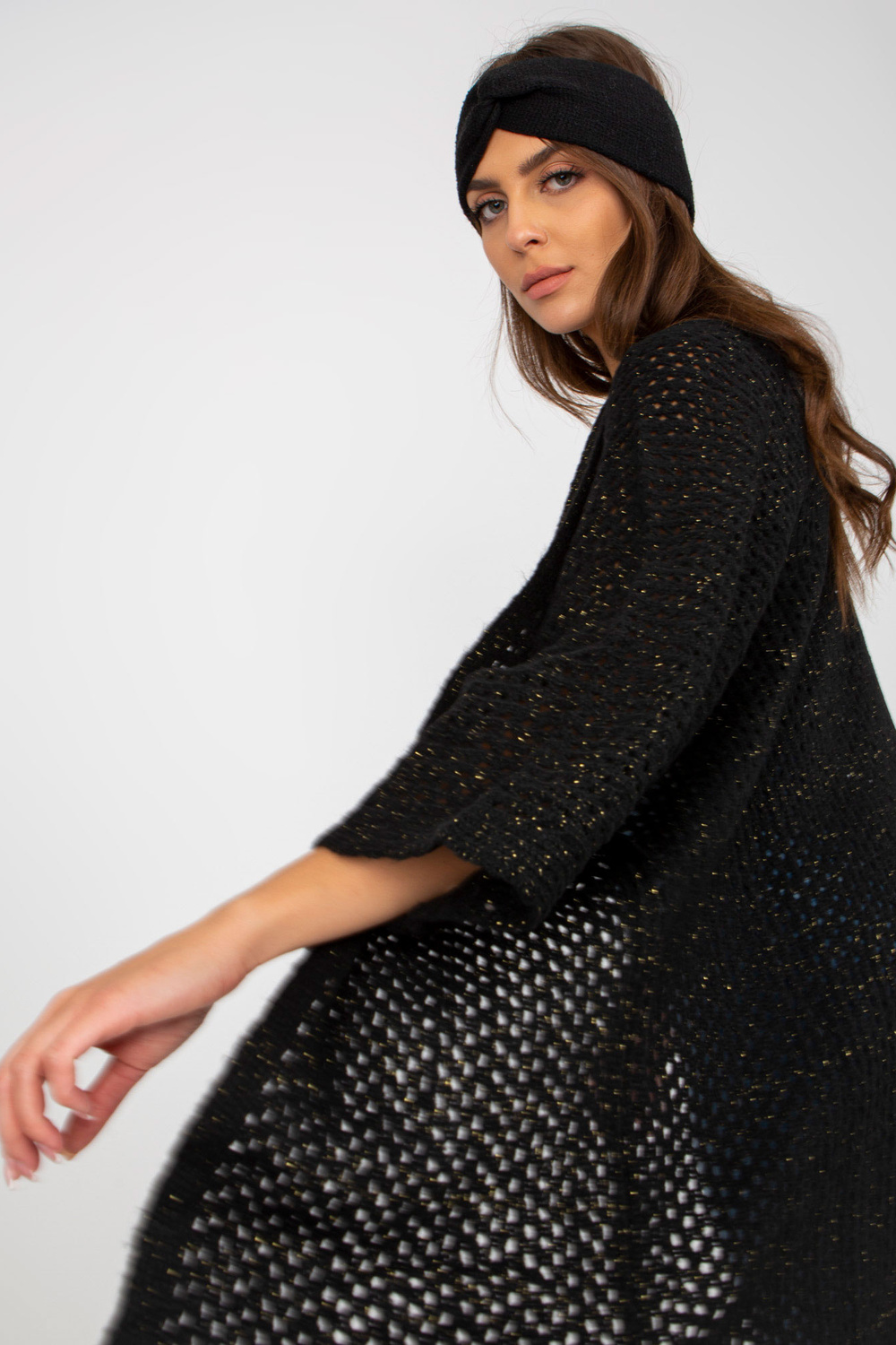 Melns, garš ažūra jaka ar platām piedurknēm OCH BELLA .