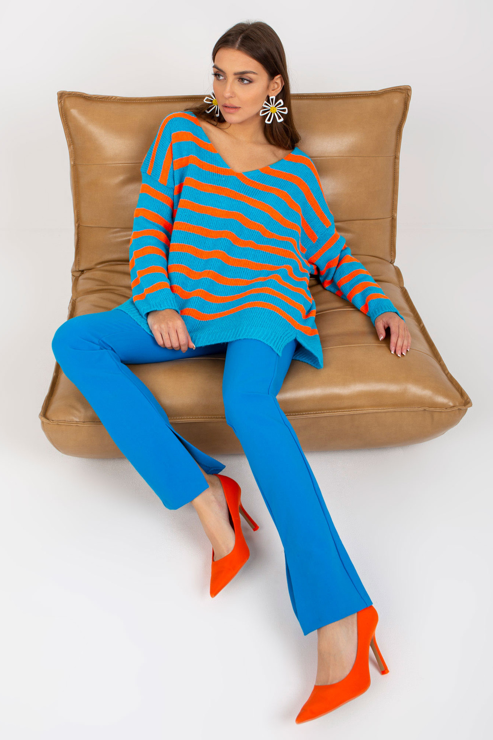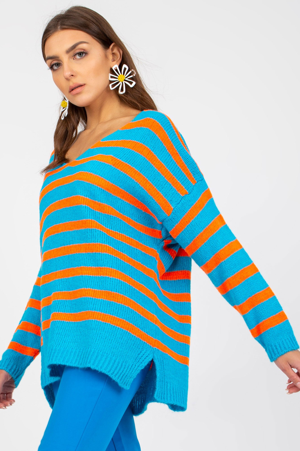 OCHBELLA zils un oranžs svītrains liela izmēra džemperis.