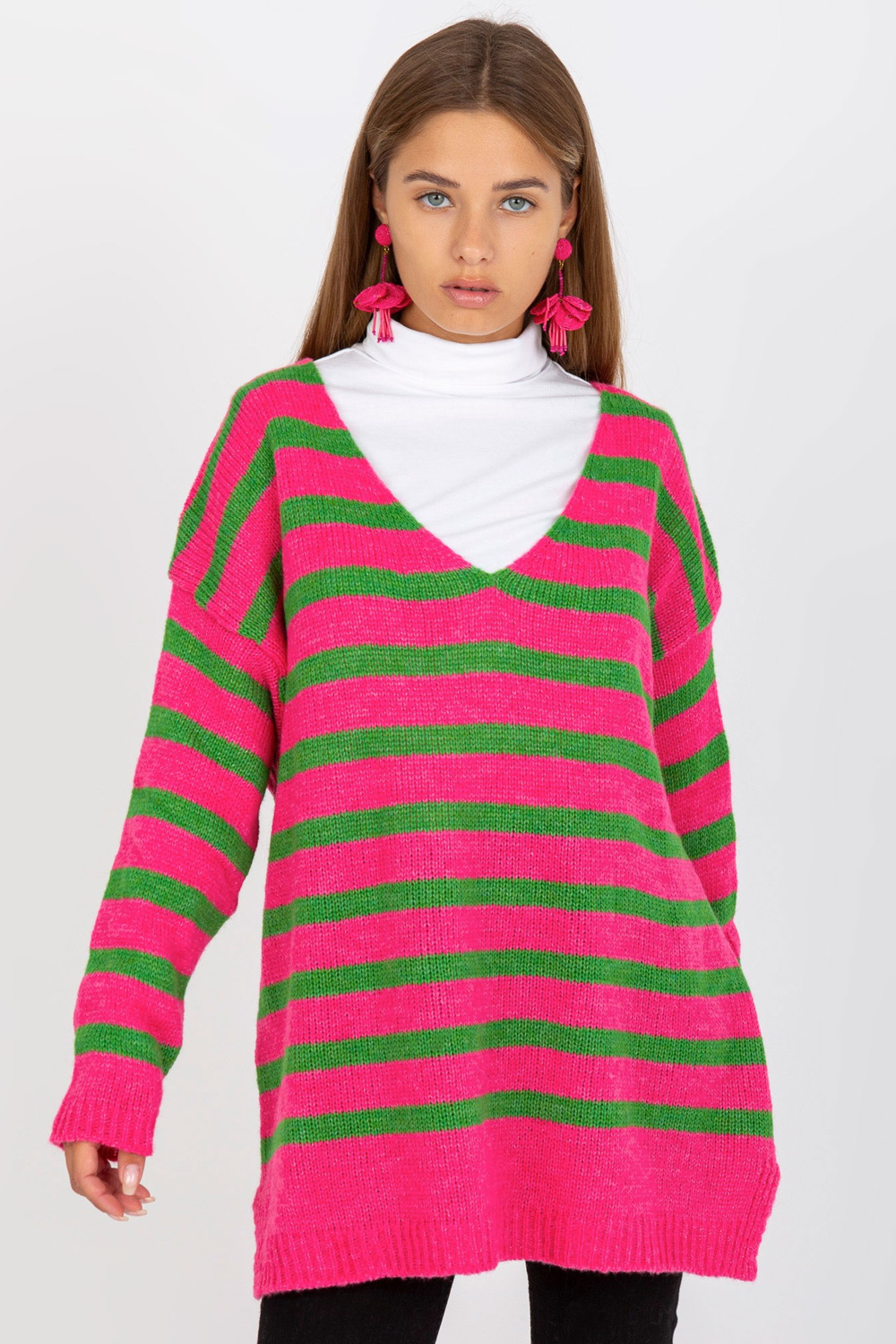 Pinkand zaļš liela izmēra džemperis ar V OCH BELLA kakla izgriezumu.