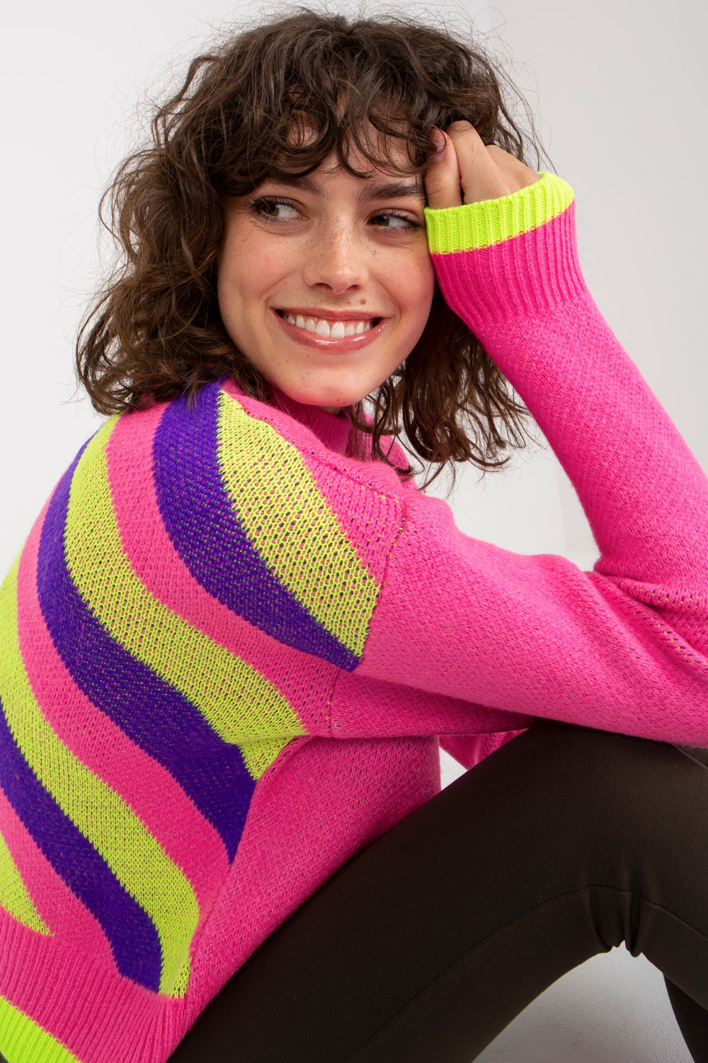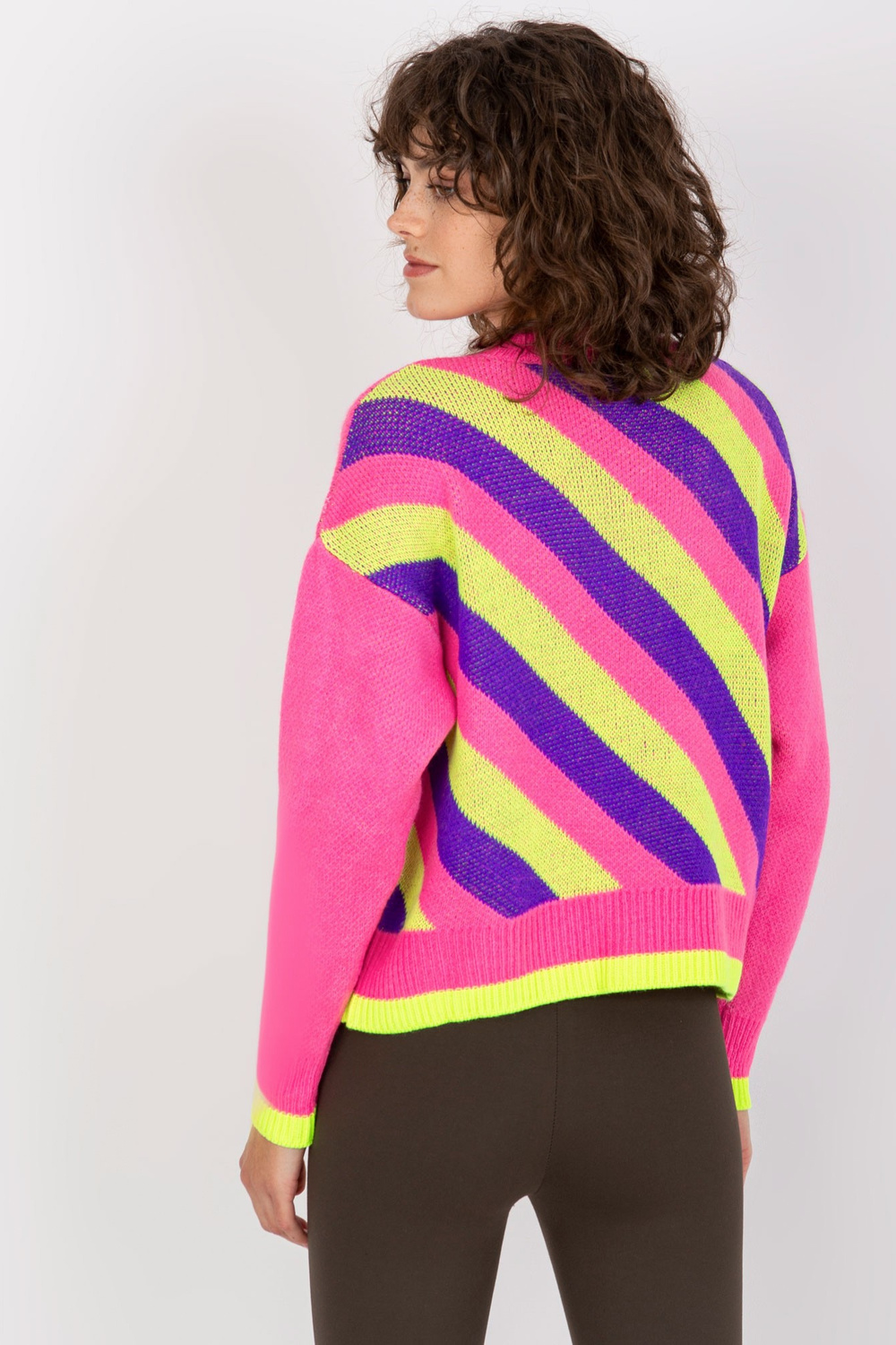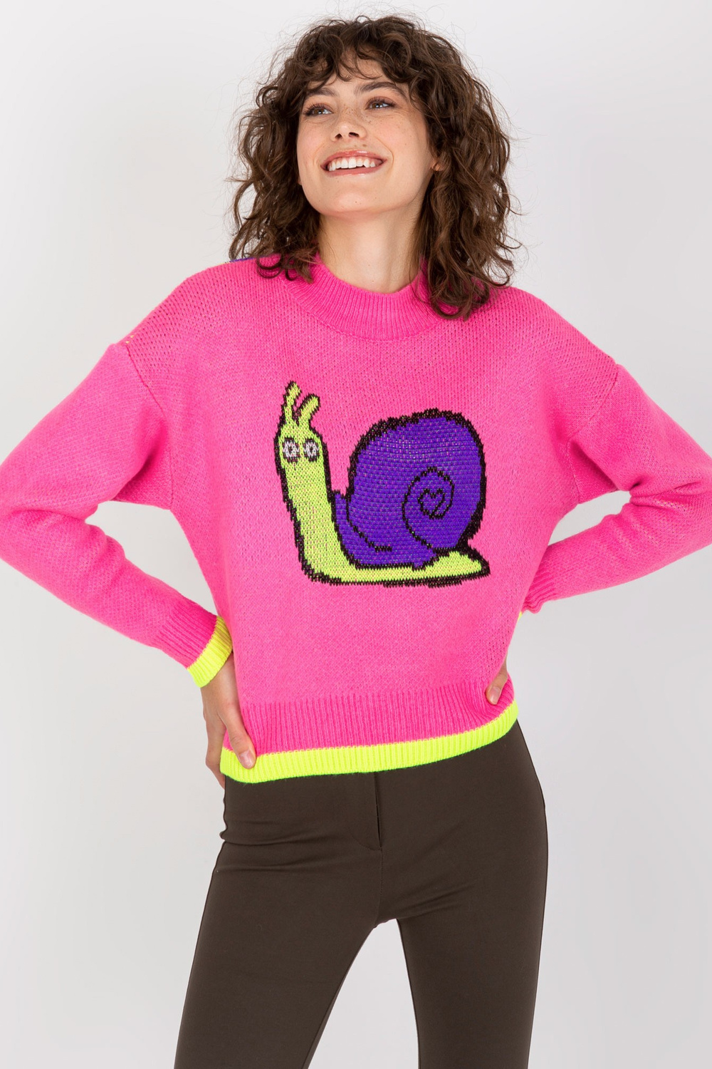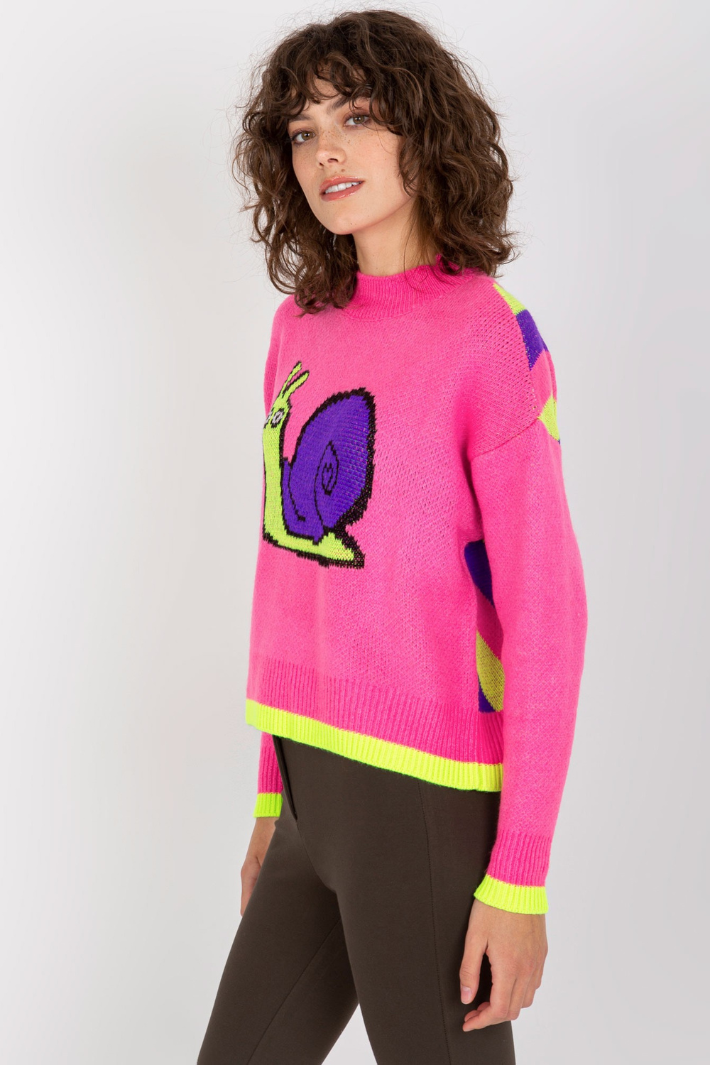 Rozā sieviešu klasisks džemperis ar krāsainu rakstu.