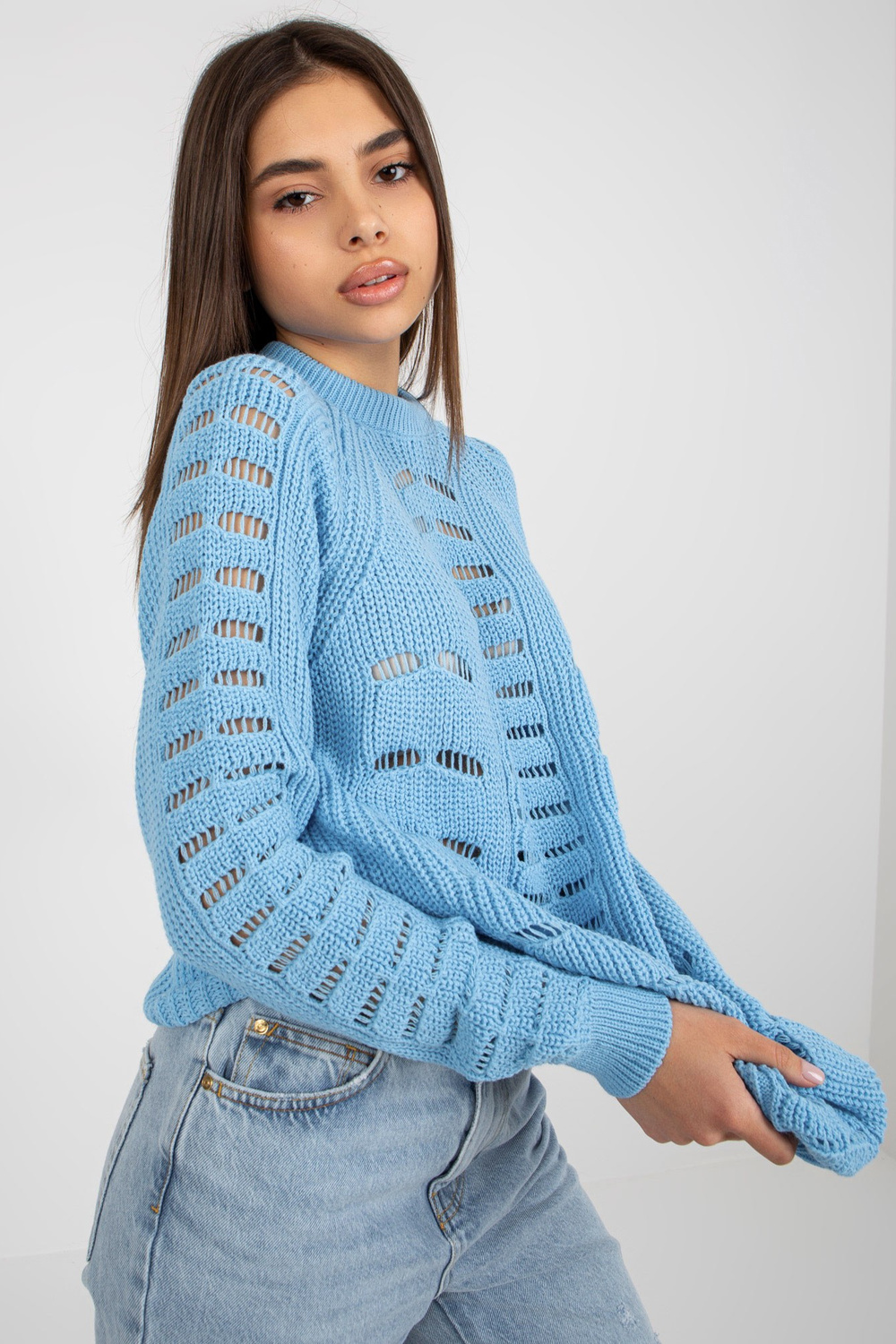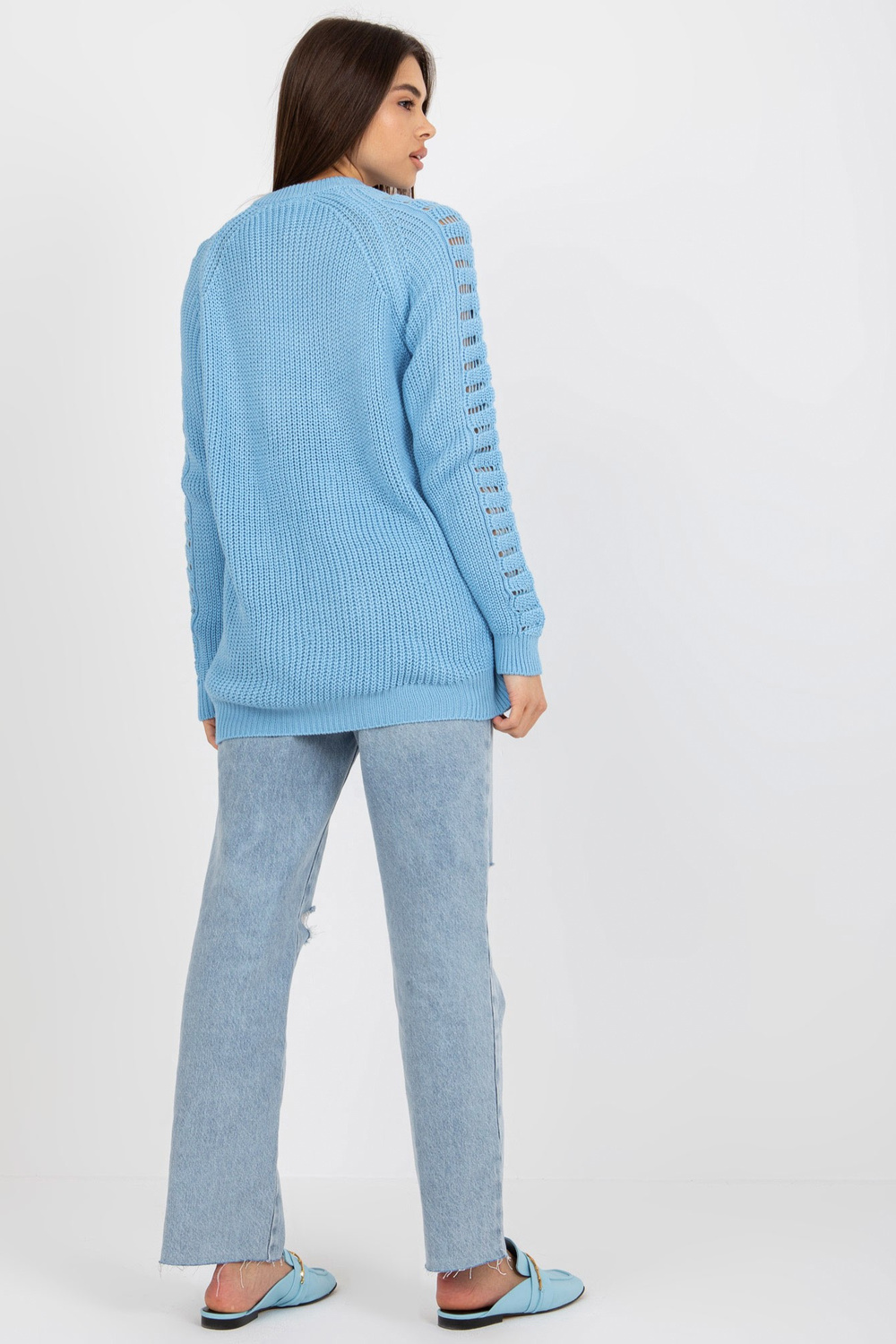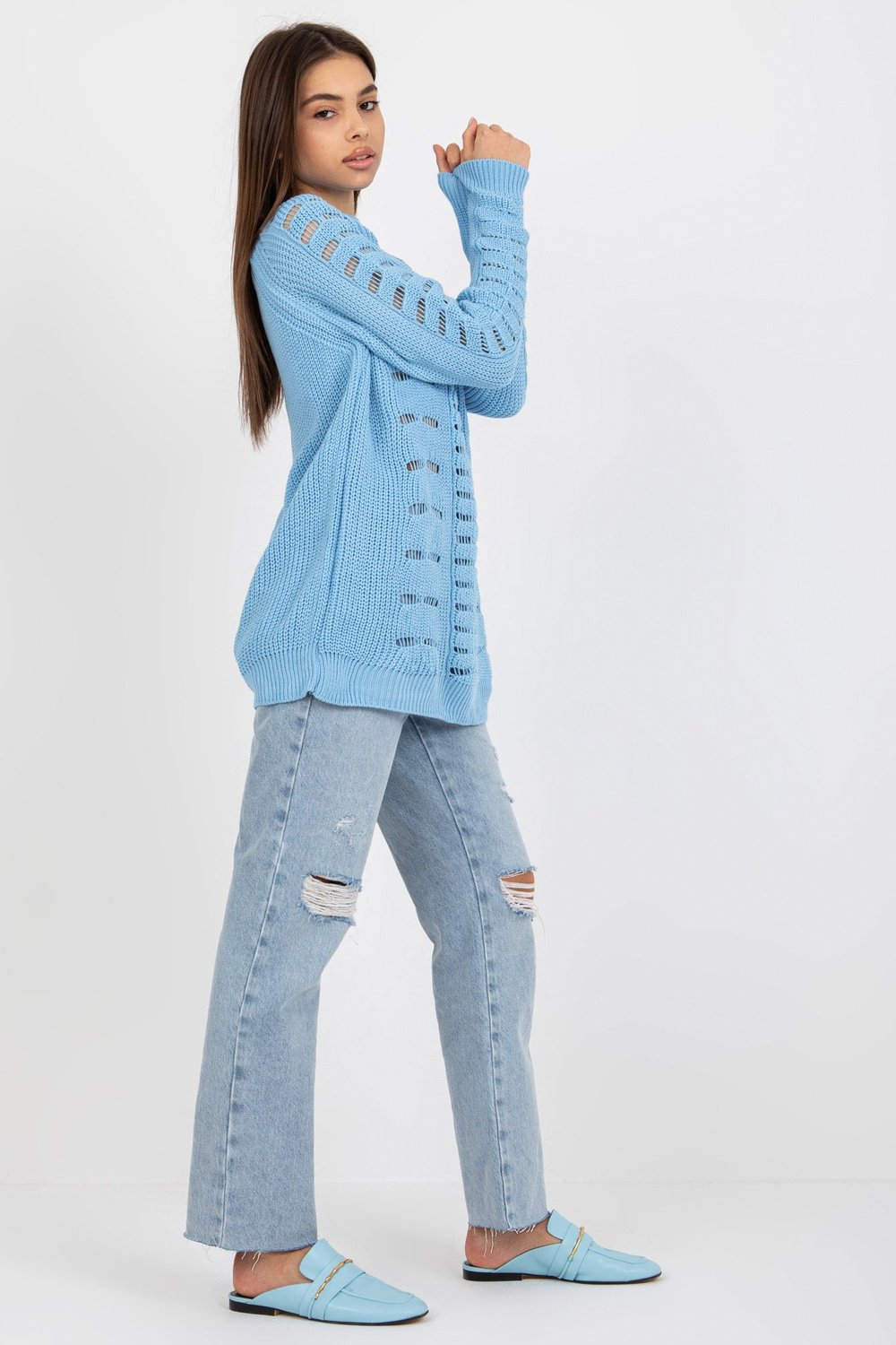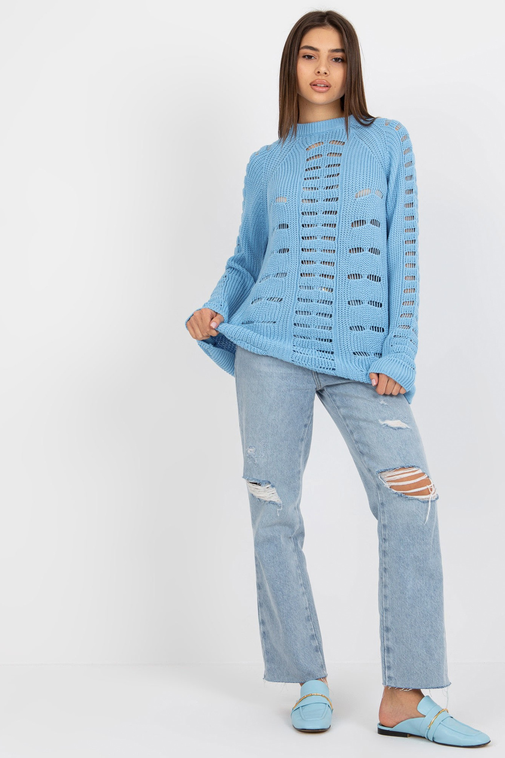 Gaiši zils ažūra liela izmēra džemperis ar vilnu.