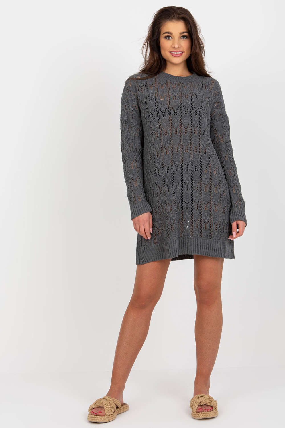Tumši pelēka brīva trikotāžas kleita ar vilnas piedevu.