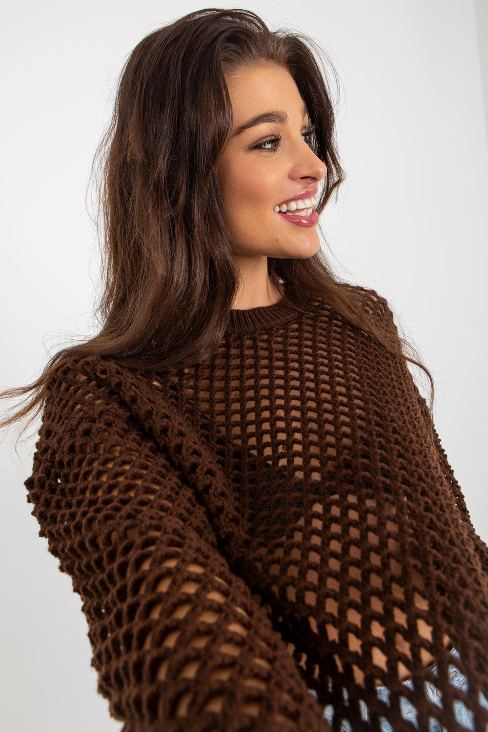 Brūns ažūra vasaras džemperis ar garām piedurknēm