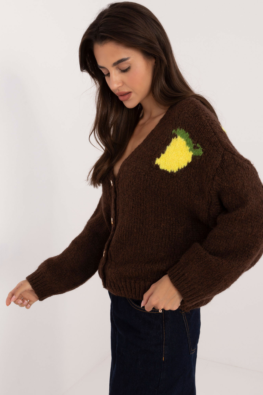 Džempera izmēri viena izmēra izmērā, mērot plakani: paduses platums - 62 cm, piedurknes garums - 56 cm, kopējais garums - 57 cm.