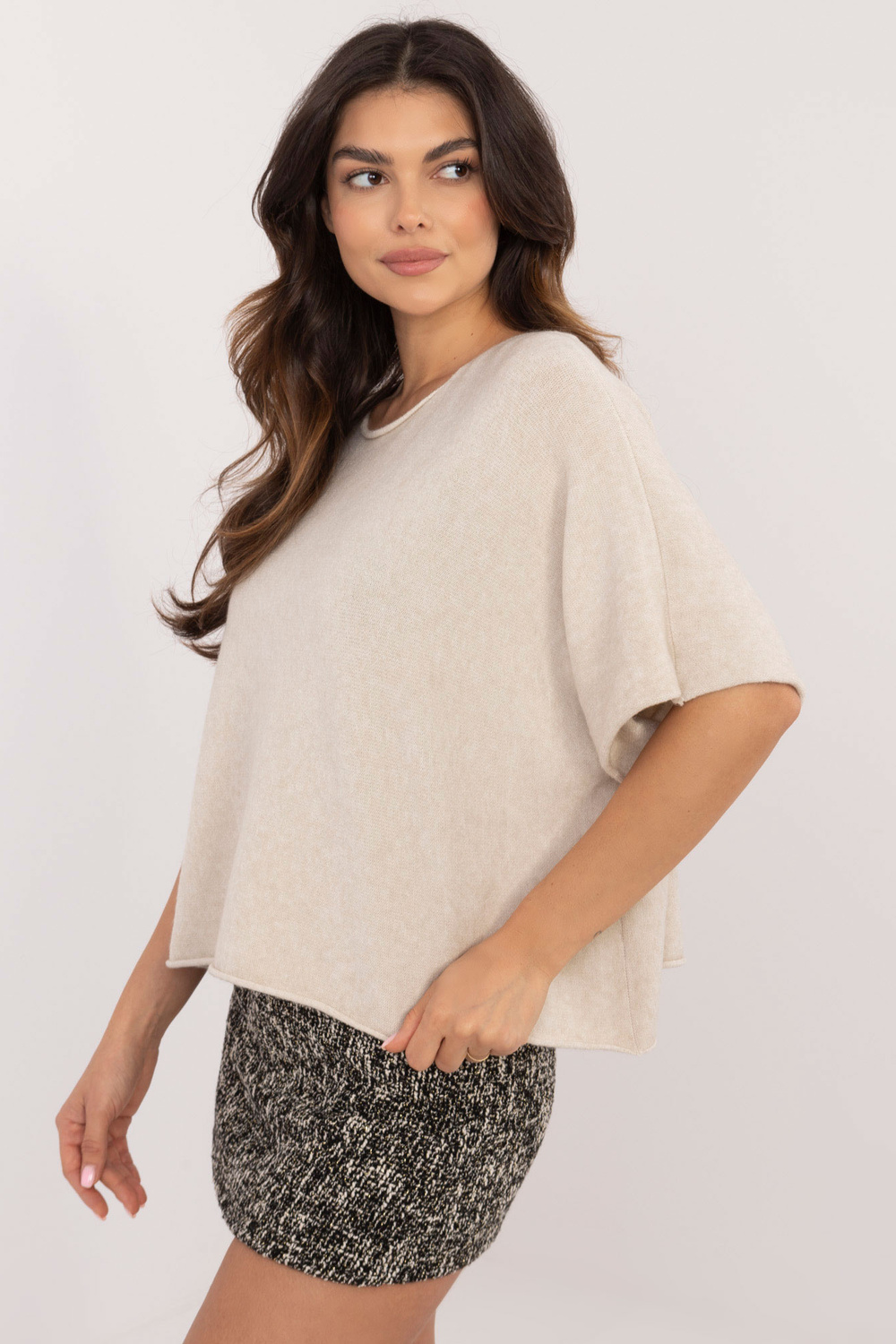 Džempera izmēri vienā izmēram: paduses platums - 75 cm, piedurknes garums - 40 cm, kopējais garums - 55 cm.