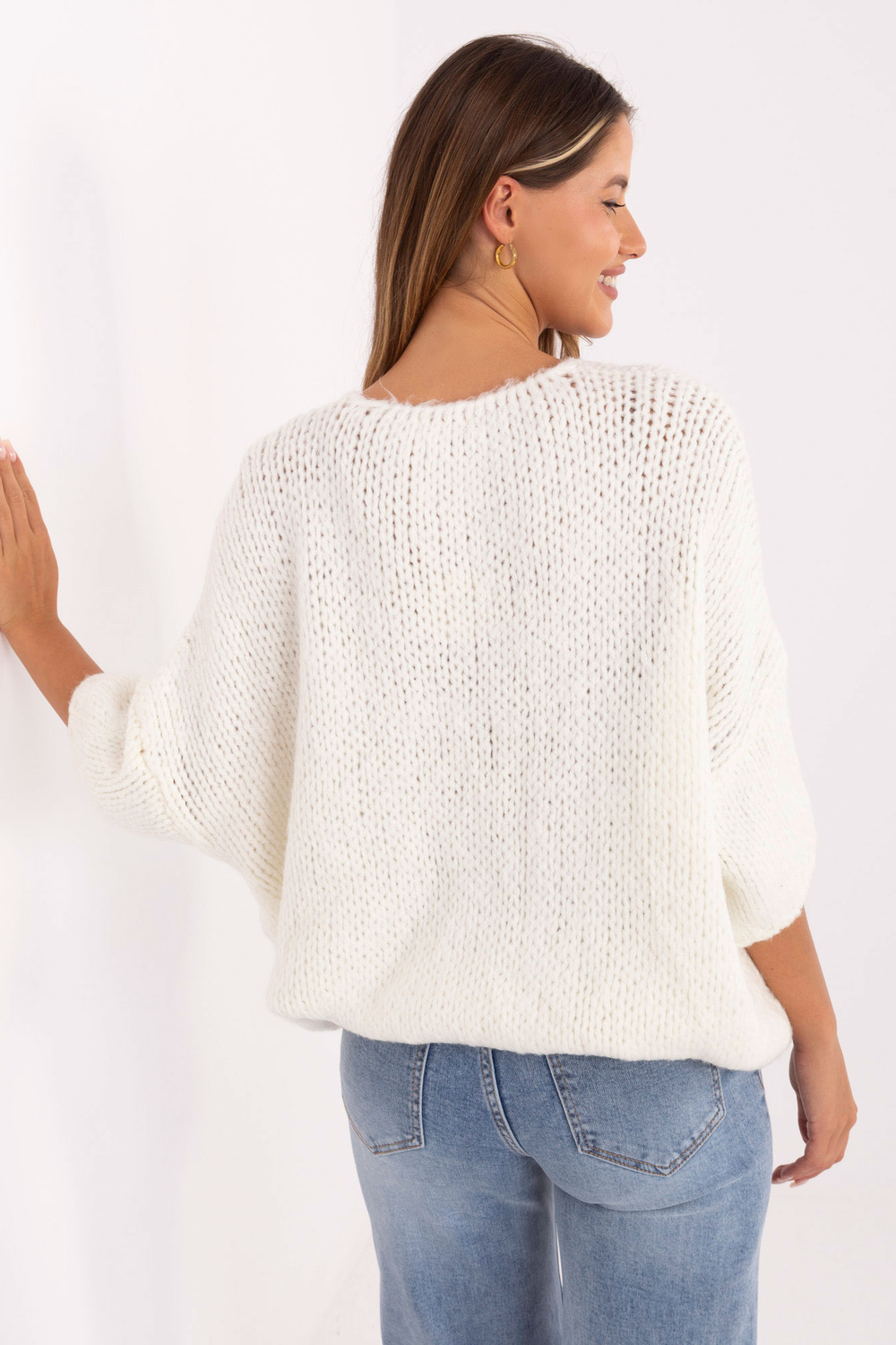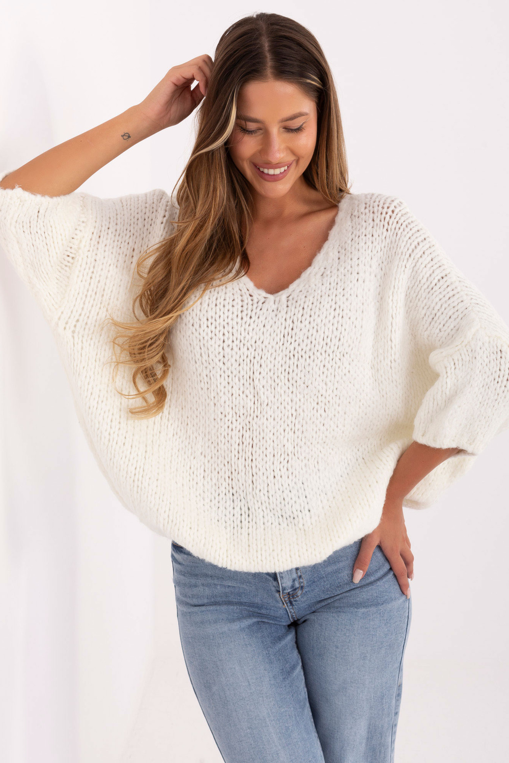Viens izmērs džempera izmēri: platums zem padusēm - 77 cm, kopējais garums - 65 cm, piedurknes garums - 23 cm (no šuves), platums gurnu līmenī - 62 cm.