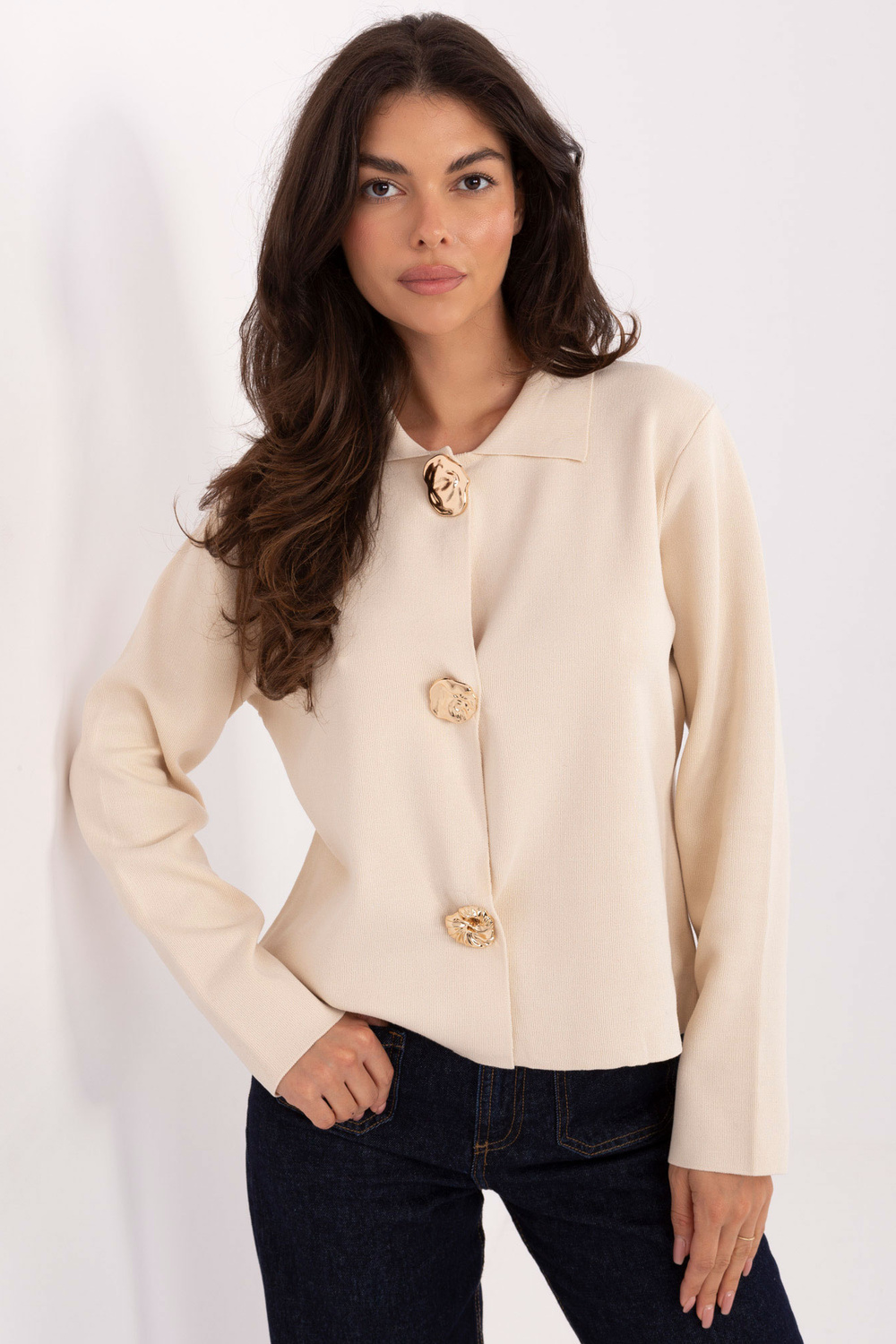Modelis valkā vienu izmēru apģērbu. Modeļa izmēri: augums 173 cm, krūtis 85 cm, viduklis 62 cm, gurni 95 cm.