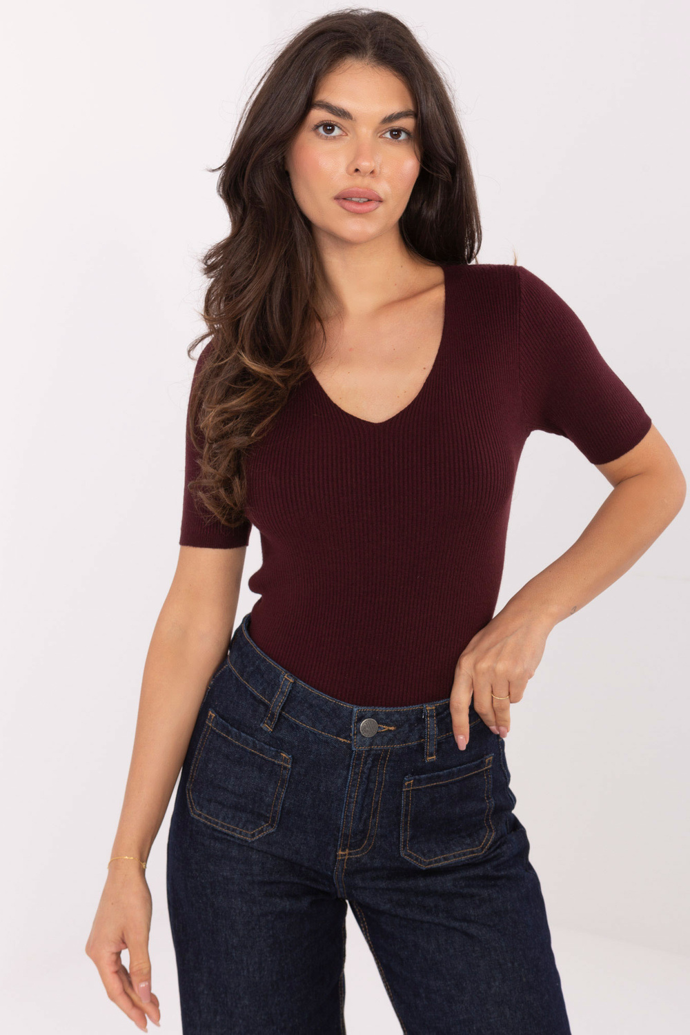 Trikotāžas topa izmēri „one size" izmērā, mērot uz līdzenas virsmas: platums zem padusēm - 39 cm, piedurknes garums - 26 cm (no vīles), kopējais garums - 63 cm, platums pie gurniem - 38 cm (elastīga auduma materiāls).