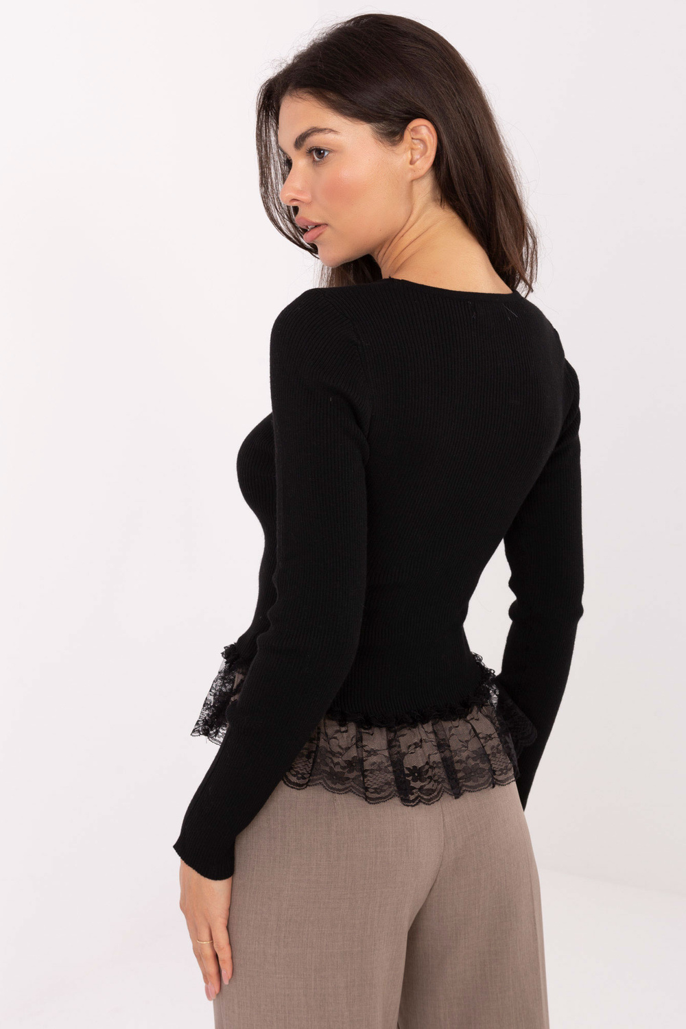 Vienu izmēru džempera izmēri, mērot plakani: platums zem padusēm - 37 cm, vidukļa platums - 29 cm, piedurkņu garums - 62 cm (no šuves), gurnu platums - 37 cm, kopējais garums - 61 cm (stiepjama auduma).