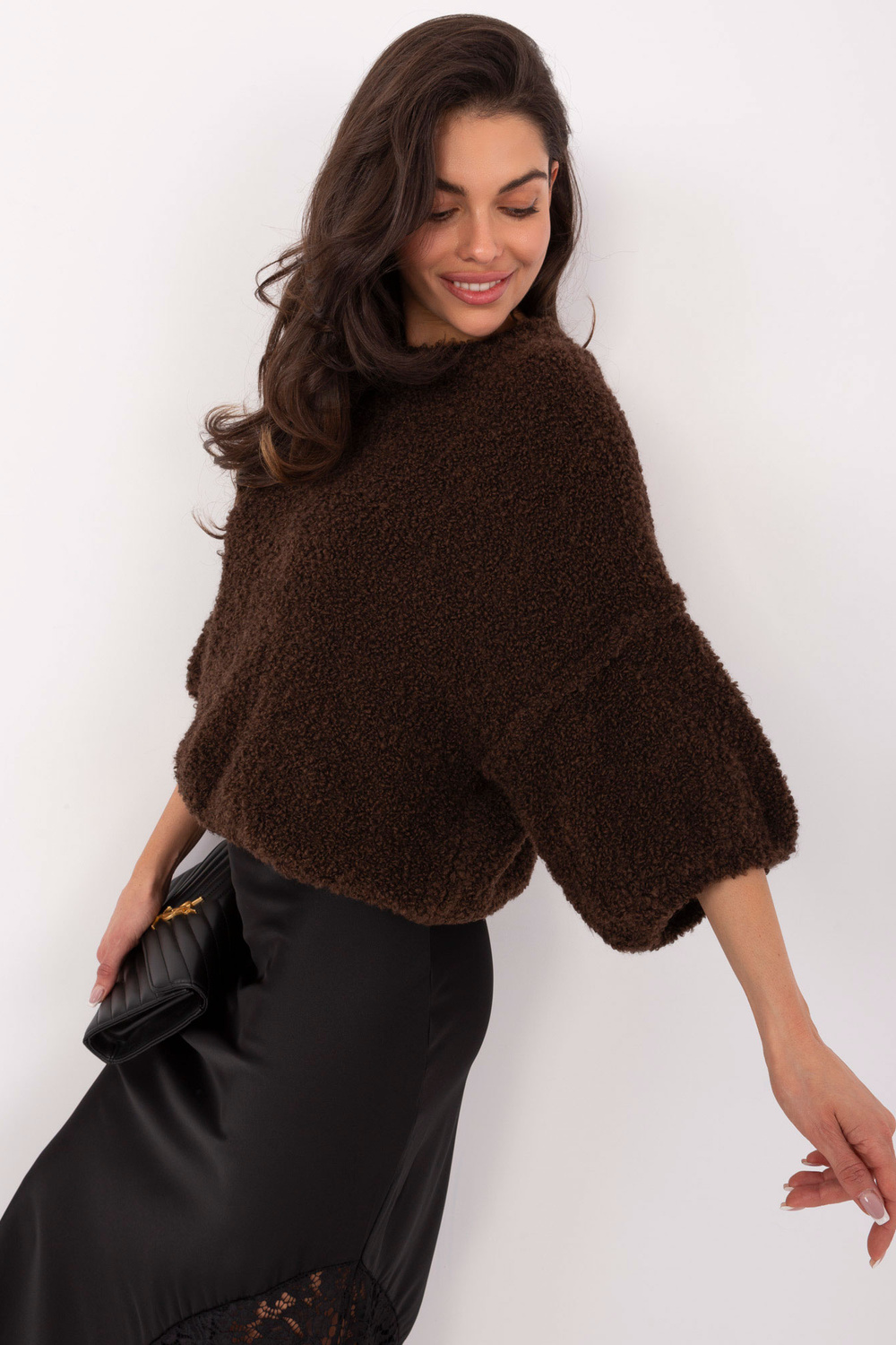 Džempera izmēri viena izmēra apģērbā, mērīti guļus stāvoklī: platums zem padusēm - 62 cm, piedurknes garums - 24 cm (no šuves), platums gurnos - 54 cm, kopējais garums - 55 cm.
