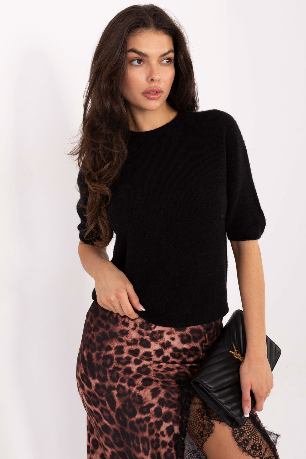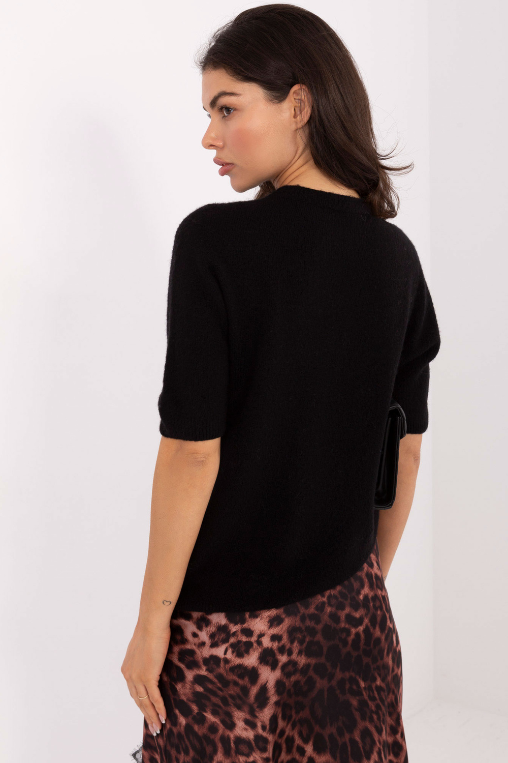 Viens izmērs džempera izmēri, mērīti guļus: platums zem padusēm – 49 cm, kopējais garums – 56 cm, piedurknes garums – 29 cm (no šuves), platums gurnu daļā – 48 cm.