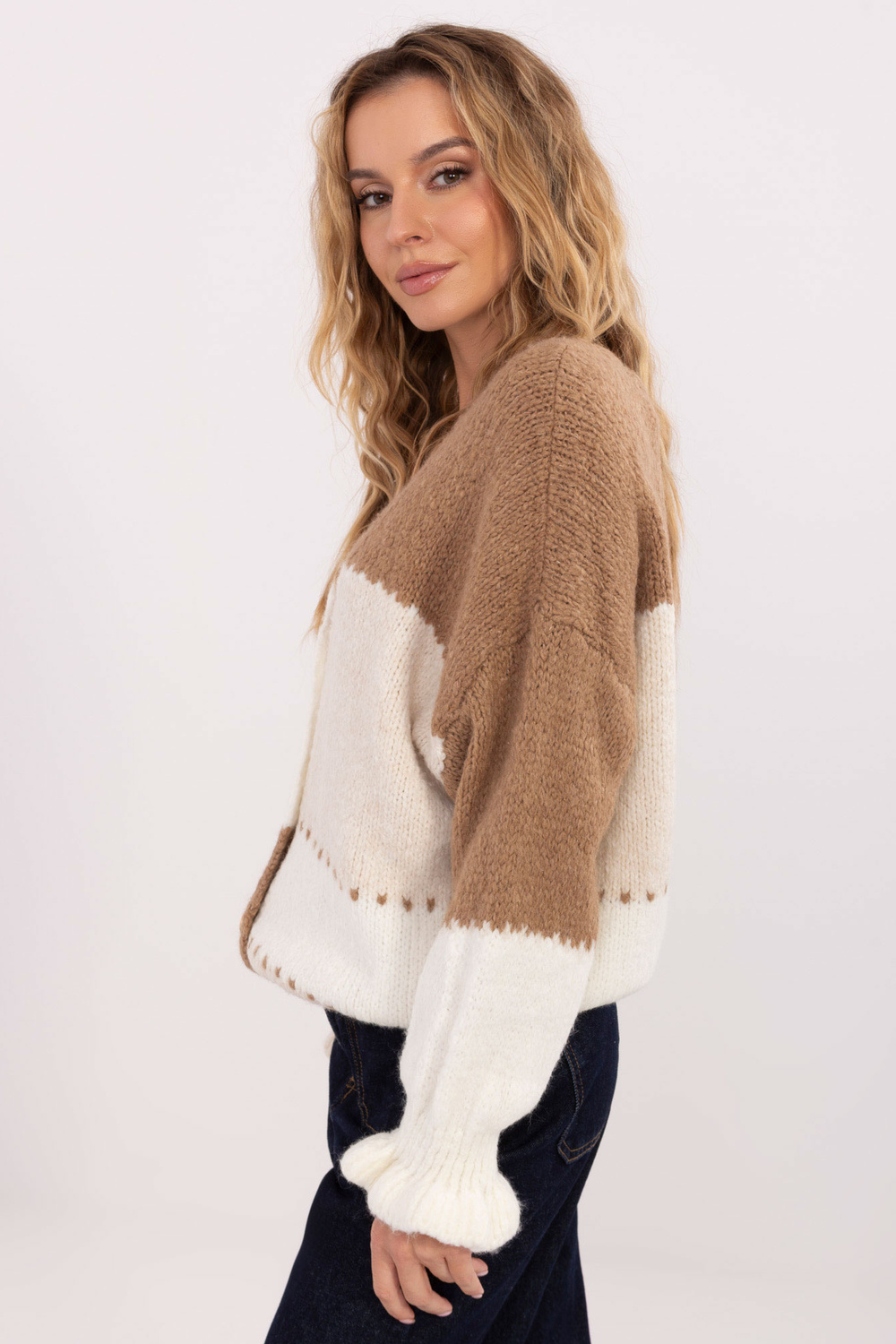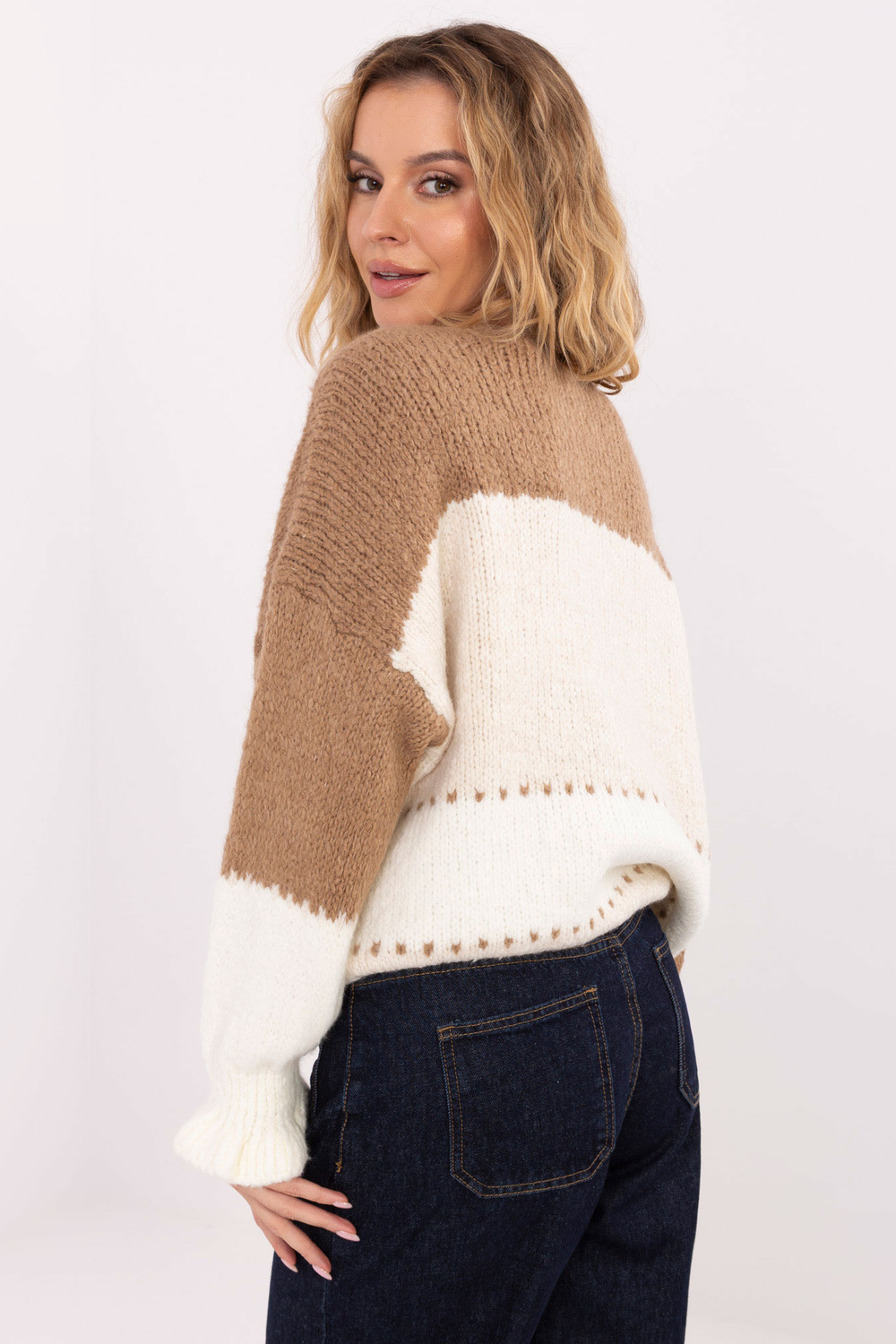 Džempera izmēri viena izmēra, mērīti izstieptā veidā: platums zem padusēm - 67 cm, piedurknes garums - 42 cm (no šuves), platums gurnu līmenī - 55 cm, platums viduklī - 39 cm, kopējais garums - 64 cm.