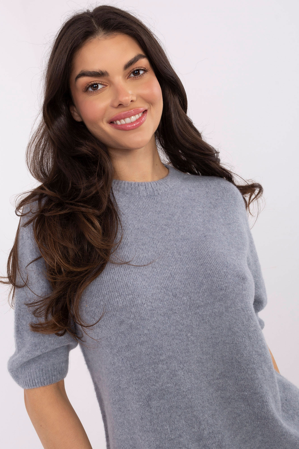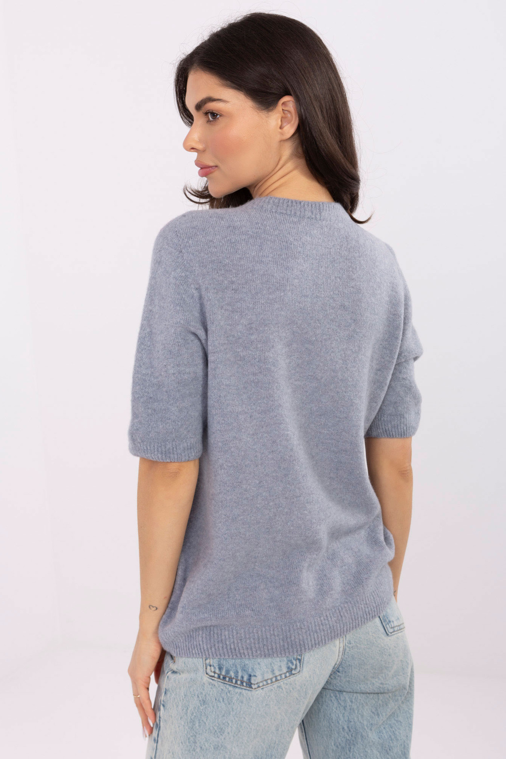 Džempera izmēri one size, mērīti izlīdzinātā veidā: platums zem padusēm - 49 cm, kopējais garums - 56 cm, piedurknes garums - 29 cm (no šuves), platums gurnos - 48 cm.