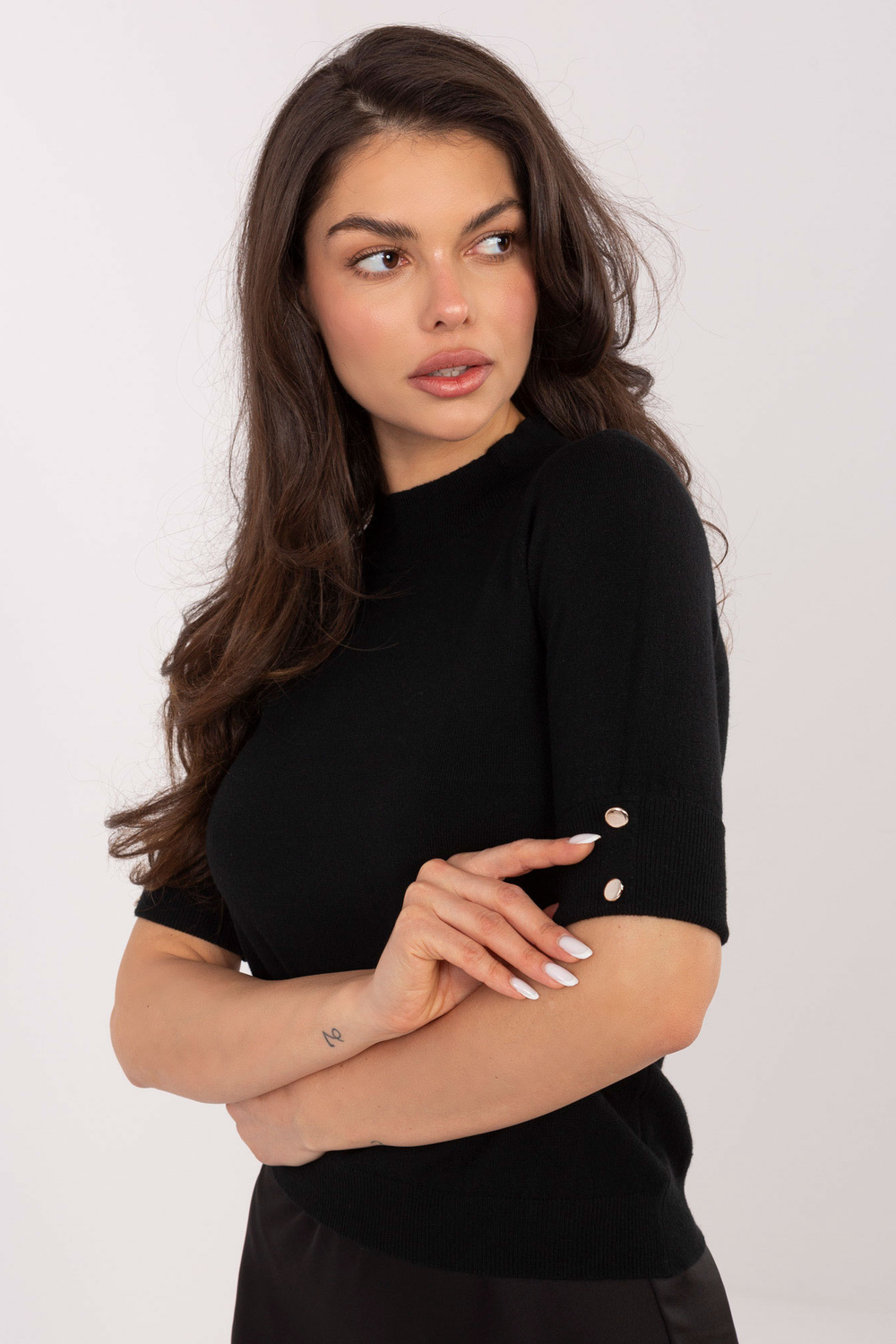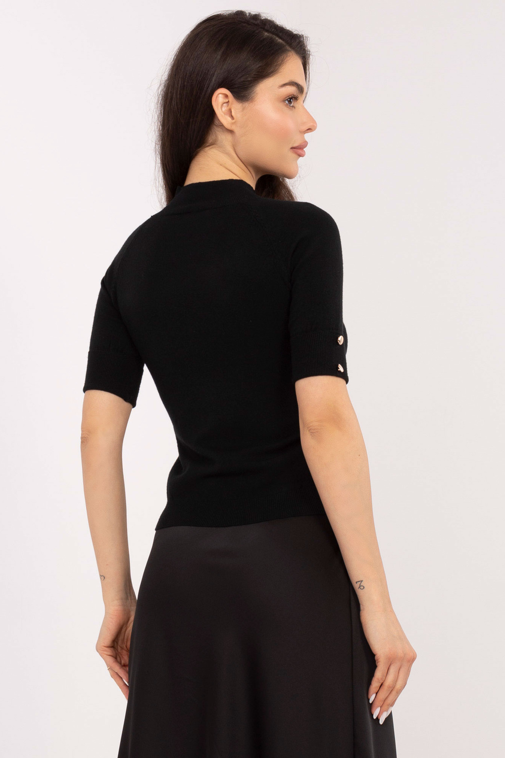 S/M izmēra džempera izmēri mērīti izlīdzināti: padusu platums – 39 cm, gurnu platums – 37 cm, piedurknes garums – 31 cm (no šuves), kopējais garums – 54 cm.