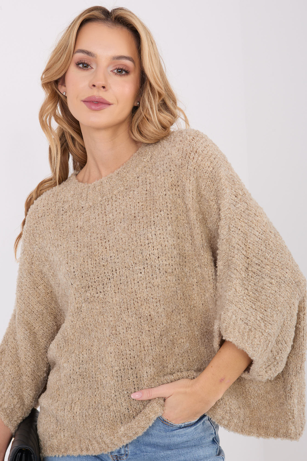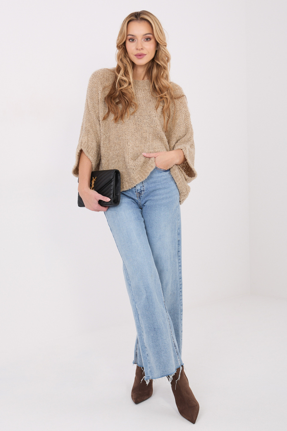 Džempera izmēri viena izmēra, mērīti izstiepti: platums zem padusēm – 72 cm, kopējais garums – 57 cm, piedurknes garums – 50 cm (no šuves), platums gurnos – 65 cm.