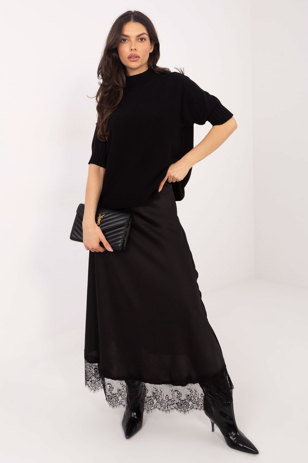 Džempera izmēri vienā izmērā, mērīti guļus: platums zem padusēm - 55 cm, platums gurnu daļā - 57 cm, piedurknes garums - 41 cm (no šuves), kopējais garums - 56 cm.