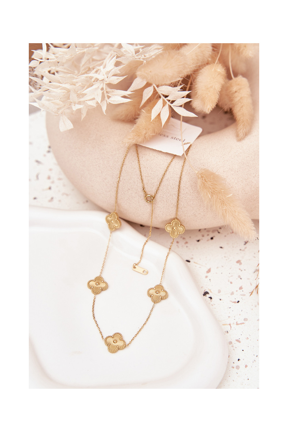 Nerūsējošā tērauda zelta krāsas kakla rotas ar ziedu motīviem