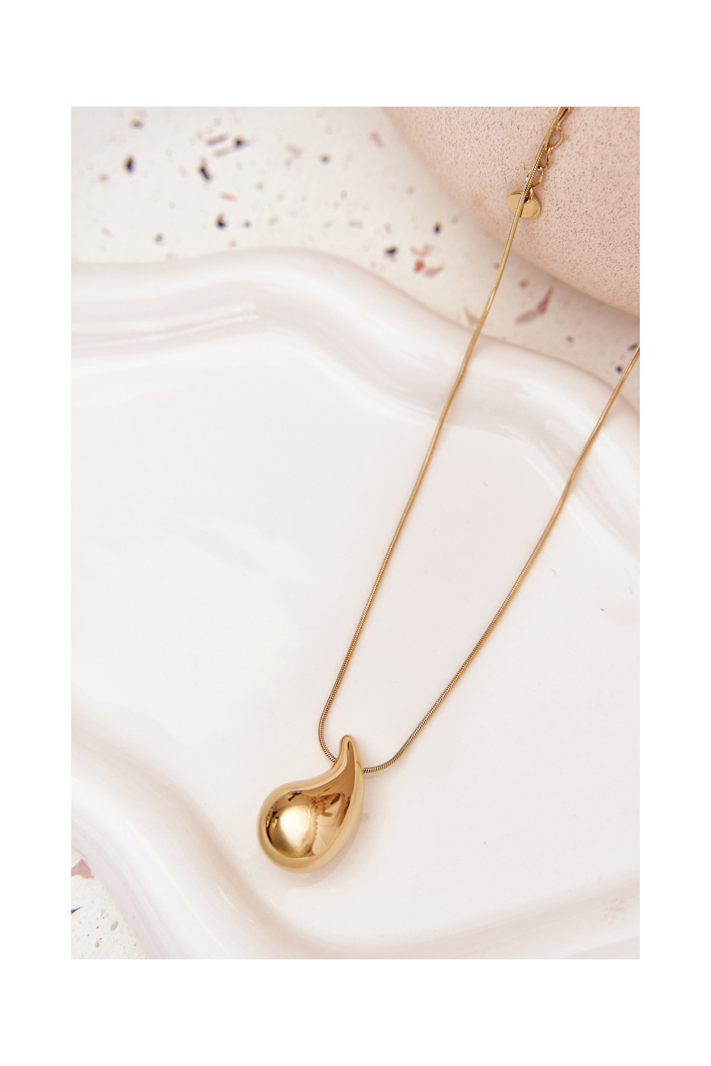 Kakla rotas uz čūsku ķēdītes ar pilienveida piekari zelta krāsā