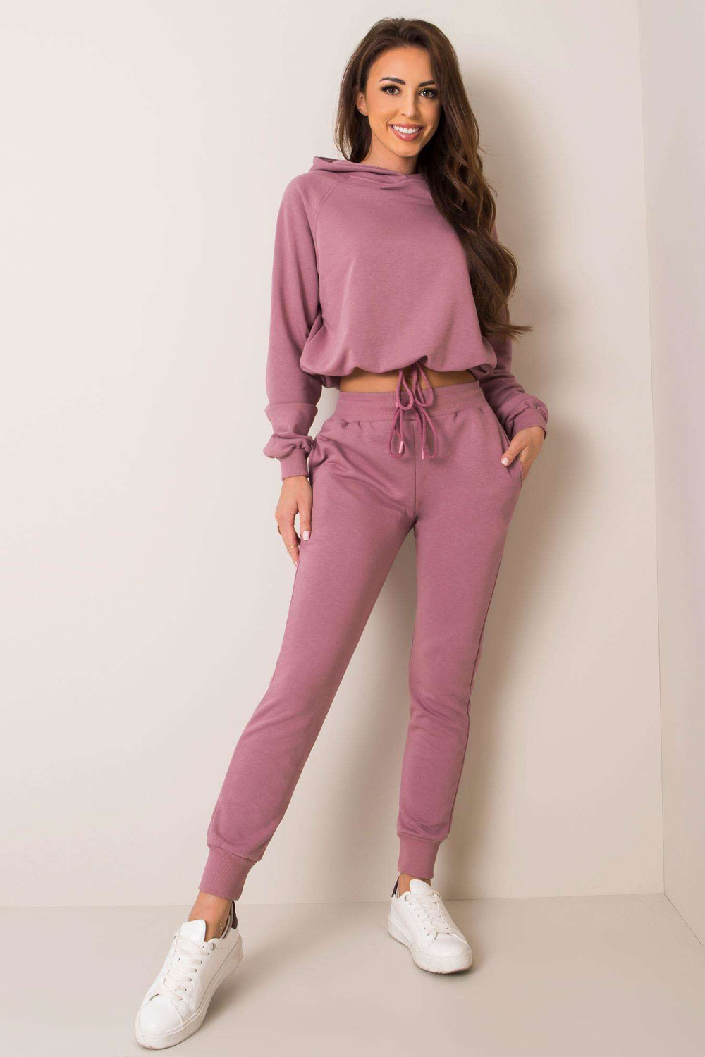 Netīri rozā komplekts Adoria. Šajā komplektā ietilpst: sporta krekls, bikšu materiālssastāvs: 90% kokvilna, 10% elastāns mazgāšanas metode: veļas mašīna 30°C. Modelis valkā S izmēru. Modeļa izmēri : augums 174 cm, krūtis 84 cm, viduklis 61 cm, gurni 93 cm. Izmēri
