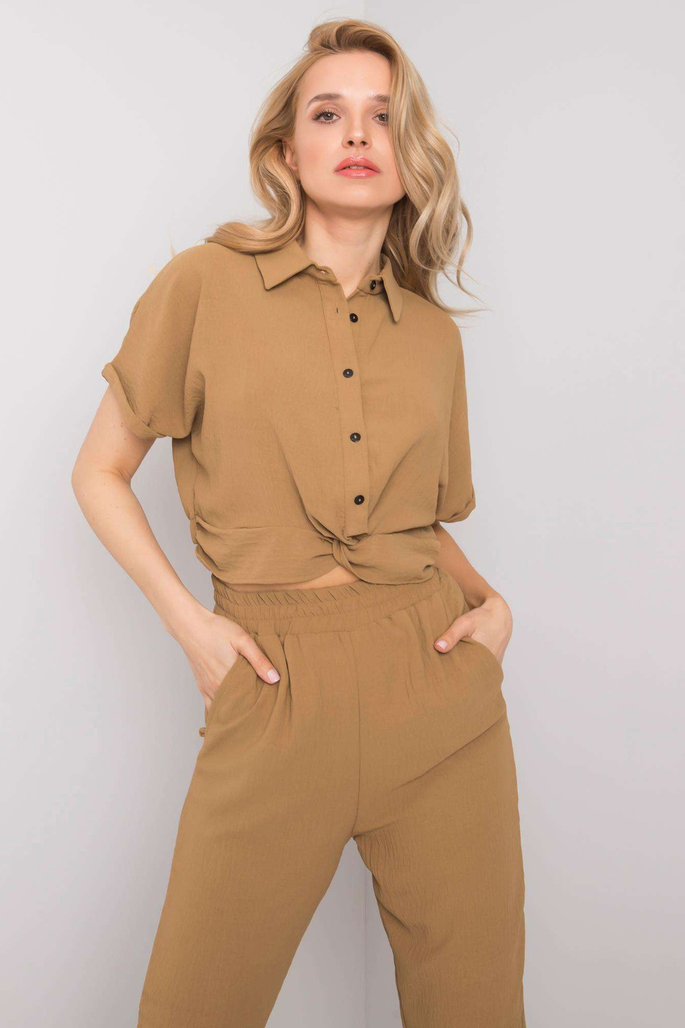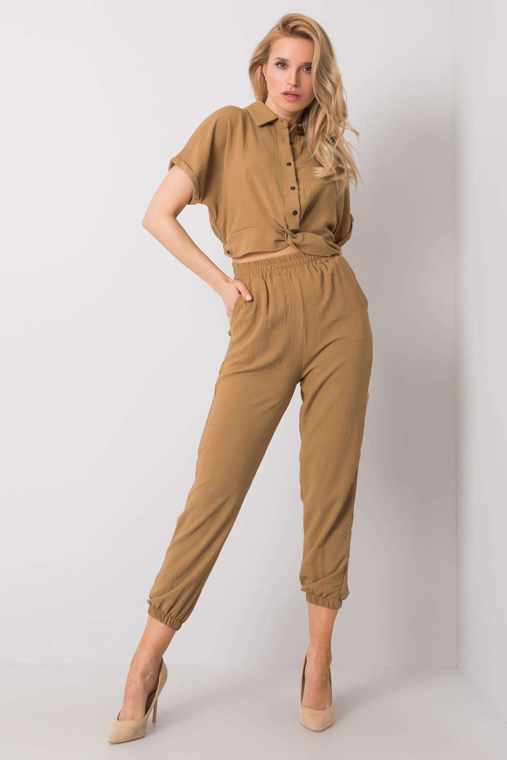 Komplekta izmēri S izmērā mērīts plakans: platums zem padusēm - 45 cm, blūzes garums - 40 cm, platums jostasvietā - 32 cm, bikšu garums - 95 cm