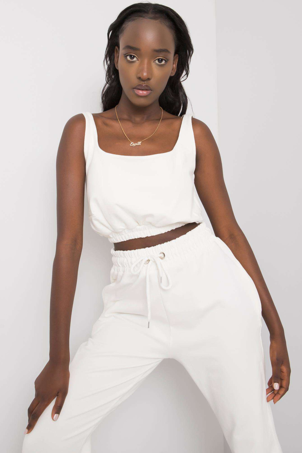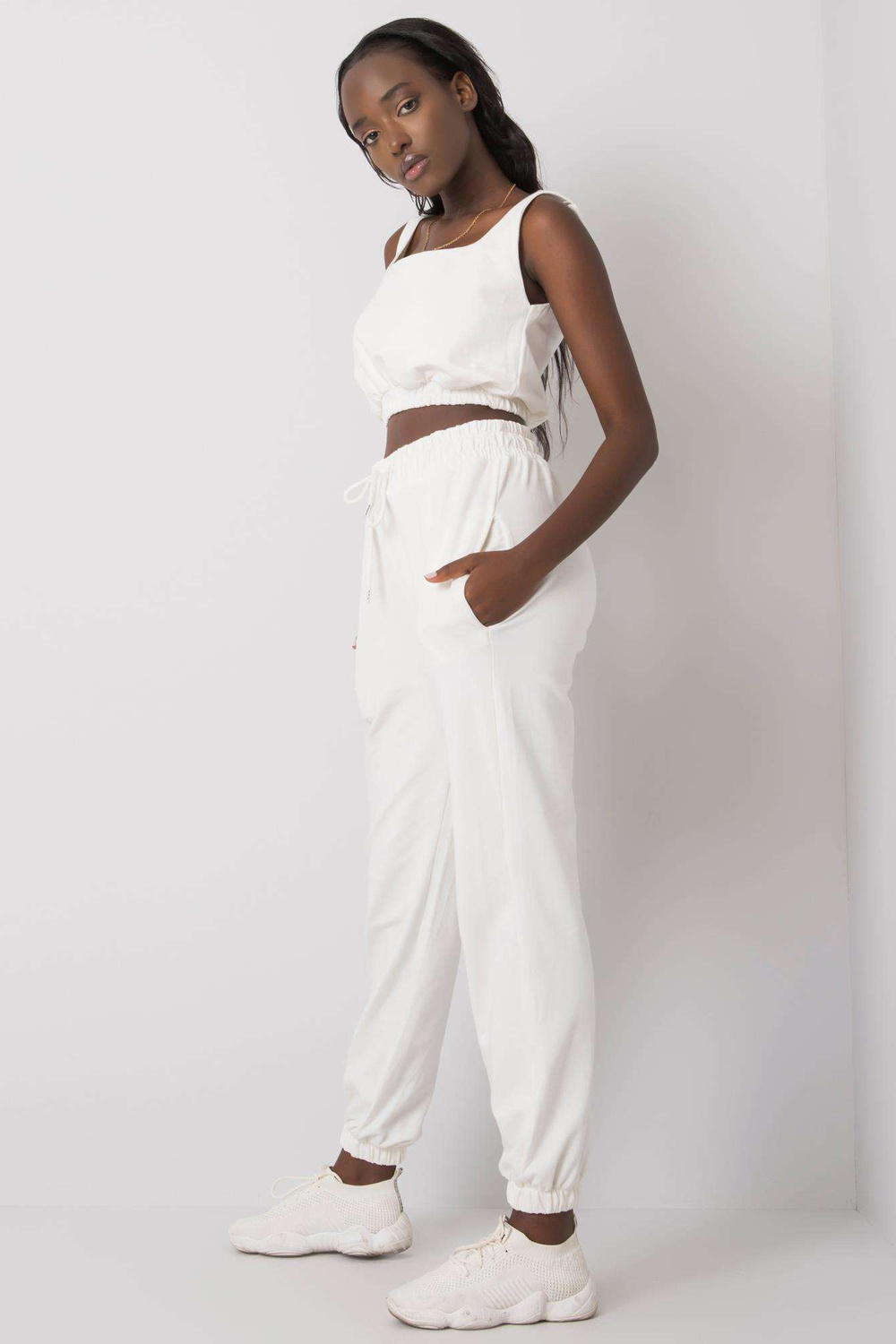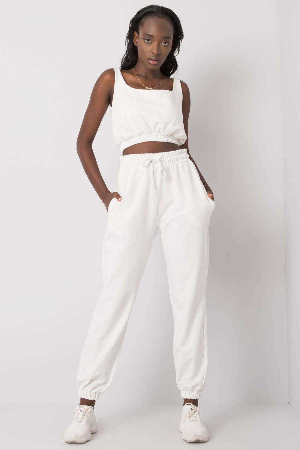 Ecrutracksuit komplekts Irini. komplektā ietilpst: tops, bikšu materiālssastāvs: 90% kokvilna, 10% elastāns mazgāšanas metode: veļas mašīna 30°C Modelis valkā S izmēru. Modeļa izmēri: augstums 170 cm, krūtis 84 cm, viduklis 60 cm, gurni 93 cm. Izmēri t